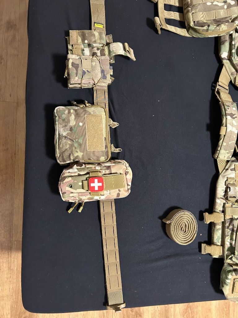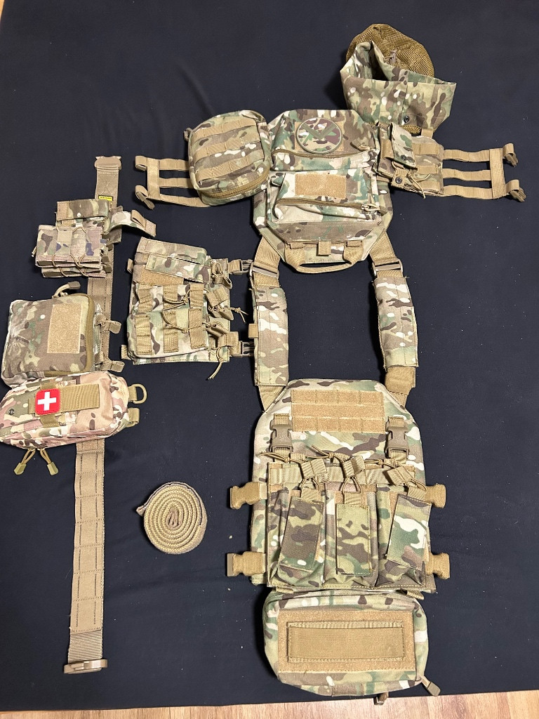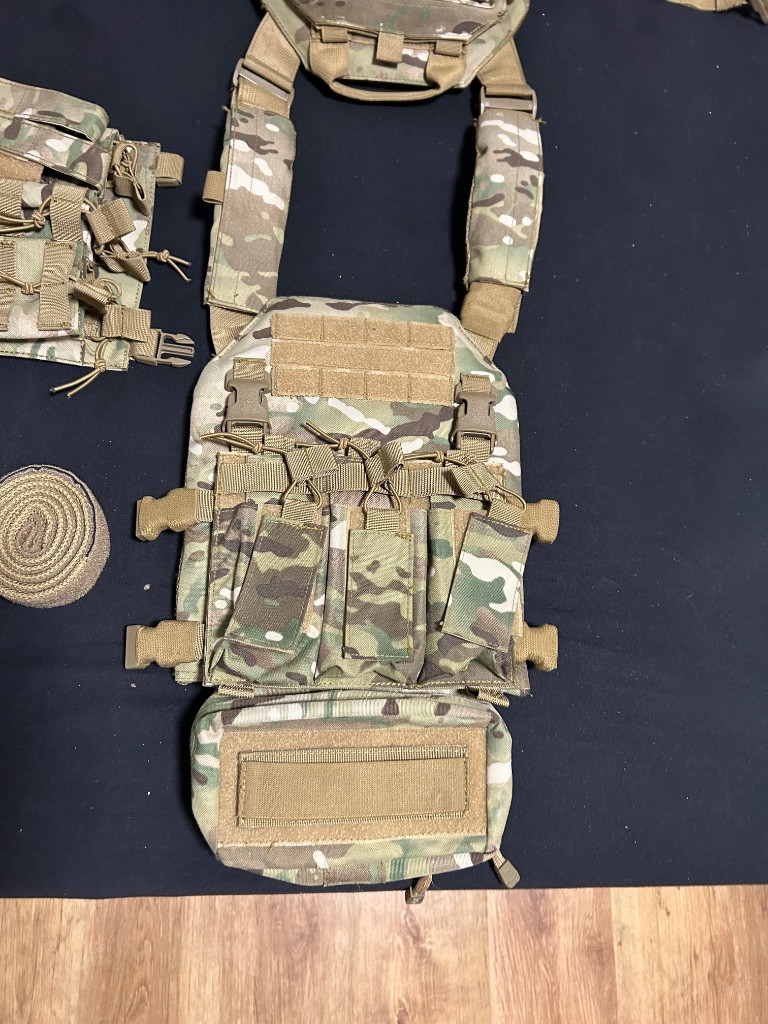 Zdravím prodán nosič hrudních platů . Nosič a sumky jsou od Značky 8Fields . Prodam vše co je na fotce Sumky jsou na M4 zásobníky plus přidám ještě na AK zásobníky . Taktický opasek je od Emersonu sumky mix ( 8Fields a Imperator). Prodám jako komplet .