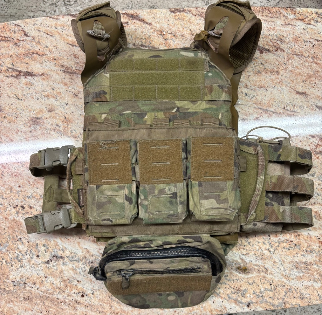 Nosič plátů Emerson gear, cena se vším, co je na vestě. Pláty nejsou součástí nabídky.