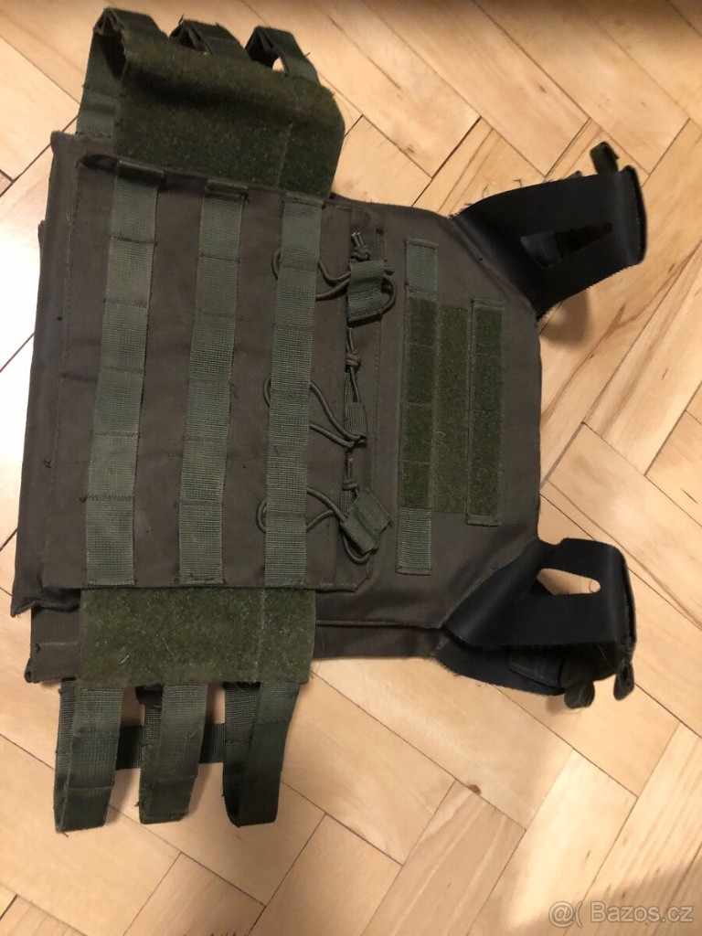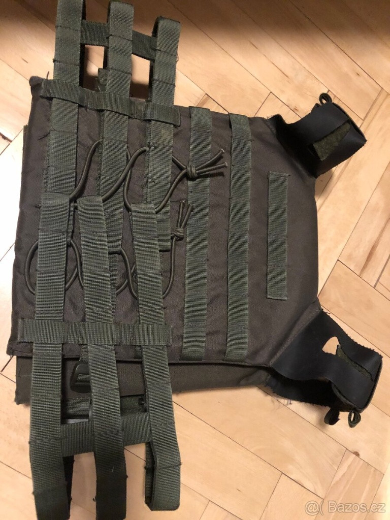 Detailní popis produktu Molle vazba na předních, zadních a postranních popruzích 3 přední kapsy na zásobníky s elastickými smyčkami vpředu pro fixaci zásobníků Vpředu kapsička na suchý zip Molle panel na přední části s Velcro panelem Možnost otevření vesty zcela vpředu pomocí suchých zipů Ramenní popruhy lze nastavit Rychlé sejmutí vesty je možné pomocí gumových šňůr vzadu Přední a zadní panel pojmou repliky plátů Materiál: 100% polyester (Oxford), potažený polyvinylchloridem Ramenní popruhy: 100% termoplastická guma