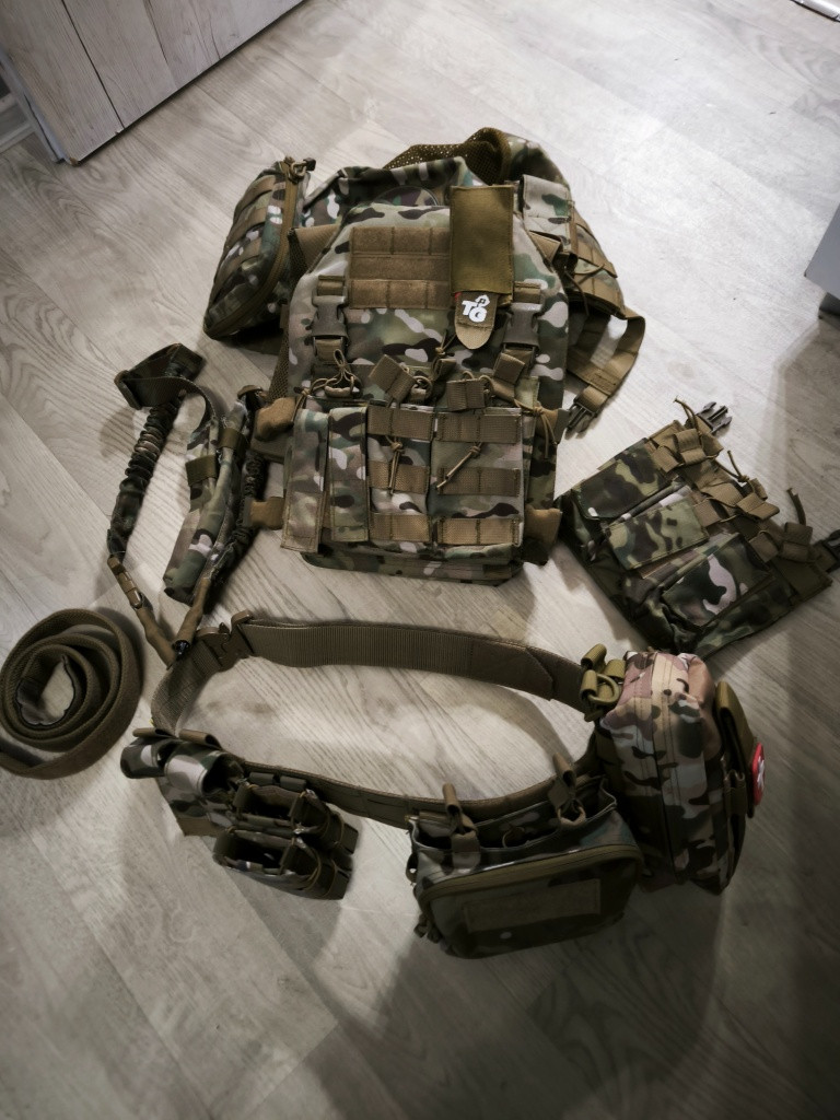 Takticky opasek emersongear, nosič platu 8fields. Opasek velikost L suchý zip. Nosič universální. Popruh na primární zbraň. Vše zánovní stav.