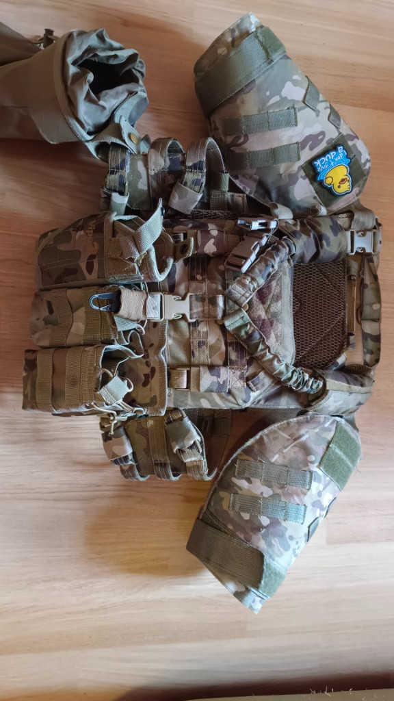 Prodam nosic platu viper tactical,tak jak je na fotce. Nosic,odjimatelne chranice ramen, pouzdro na pistoli, popruh pro upnuti zbrane, odhazovak na zasobniky a pouzdro pro vak na vodu.