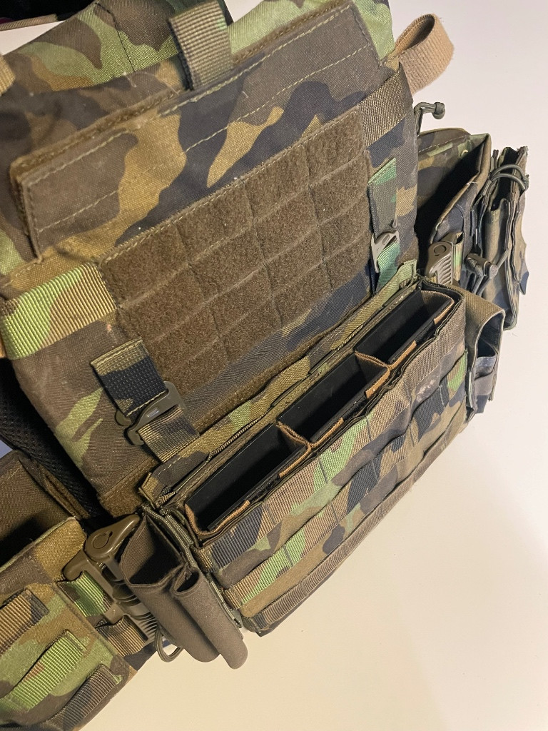 Mám na prodej již nevyužívanou výstroj ve vz.95. Vše je používané, ale stav tak 8/10. Většinou jen špinavé nebo nějaké kosmetické vady. Vše od firmy High Level Gear. Další foto a info rád poskytnu. Nosič plátů - velikost na pláty SAPI M/ 25x30/ 10x12". Do boků se vejde měkká balistická vložka 28x14 cm. Na nosiči je přední platforma s kydexem na 3 zásobníky AR15/bren2. Dále elastická sumka na turniket, sumka na pistolový zásobní, sumka na vysílačku baofeng s delší baterkou a univerzální sumka. K nosiči je ještě navíc trojsumka s gumičkami na AR15/bren2 zásobníky s admin kapsou a samosvornou sumkou na zásobník AR15/bren2. Pořizovací hodnota celého setu byla 9200 Kč. Cena: 5000 Kč za komplet Chtěl bych to prodat jako komplet, komplet tak jak je nastrojená. Pokud máte zájem pouze o nějakou konkrétní sumku, tak napište, pokud se nenajde někdo kdo by to vzal celé, tak se snad nějak domluvíme. Odesílám pouze po zaplacení alespoň poštovného dopředu!!!