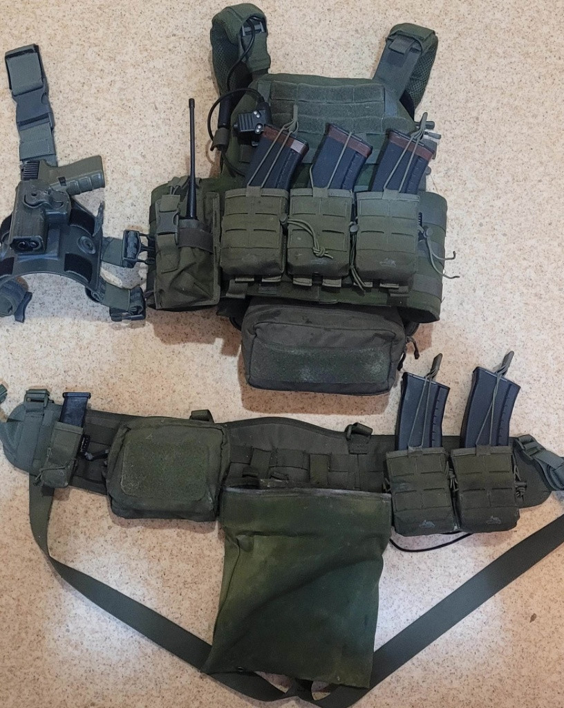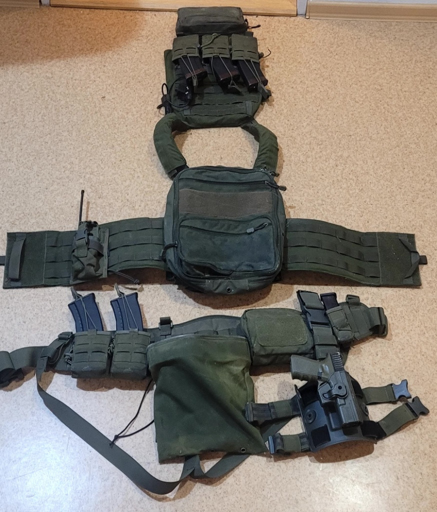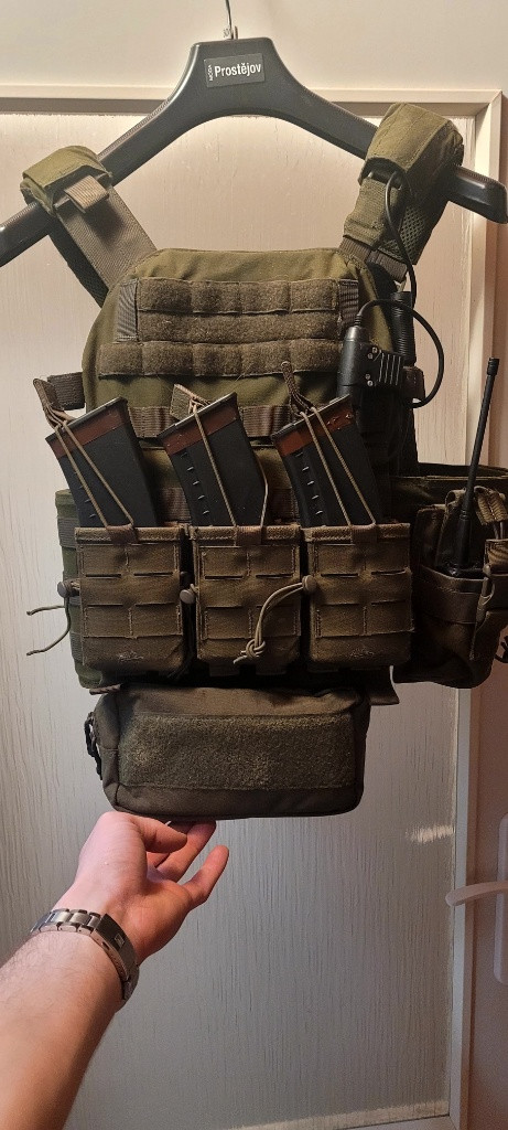 DCS je nošené, ale bez poškození. Na prodej je tak jak je na foto (kromě zbraně , vysílačky a zásobníků) Ve vestě jsou imitace plátů. Vesta je osazená: 5x Helikon-Tex Competition na zásobník AR/AK 1x Helikon-Tex Competition Rapid Pistol Pouch 1x Helikon tex uni. sumka 1x odhazovák 1x taktický batoh molle ( výrobce neznámý) 1x sumka vysilacka ( výrobce neznámý) 1x emerson gear brisni sumka 1x battle belt + řemeny ( výrobce neznámý) 1x amomax holster pro glock
