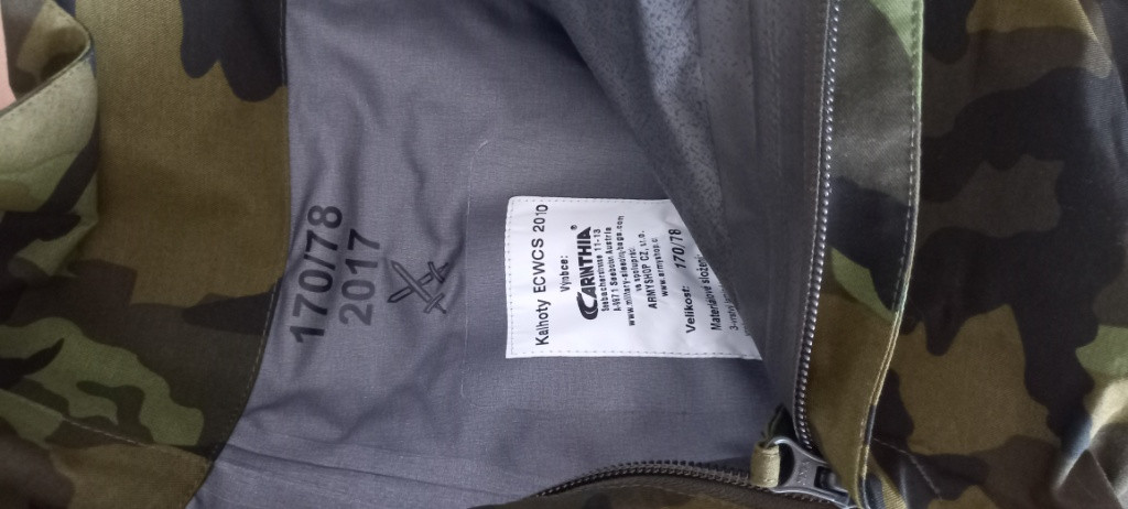 Prodám nové kalhoty ECWCS 2010, šle součástí. Výrobce Carinthia. Velikost 170/78. Složení na fotkách. Jako dárek přidám rukávový znak, nášivku se suchým zipem.