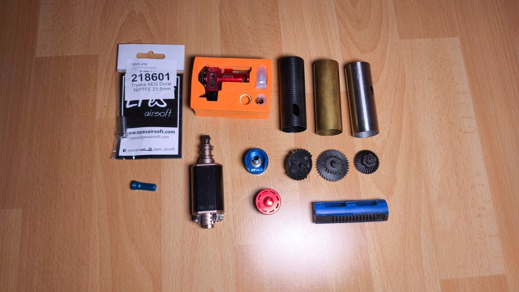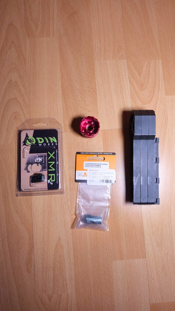 Nabízím spoustu dílů, které mi tu zbyly z několika staveb. Některé jsou použité, některé úplně nové, ale všechny funkční. ---------- Dily: RA nerezový válec - 250 Kč, Plný válec bronzový - 50 Kč, ASG ULTIMATE CNC ocelový válec - 150 Kč, Nová MAXX CNC hop-up komora - 1500 Kč, ASG ULTIMATE CNC hliníková hlava válce V2 - 100 Kč, MAXX hliníková hlava pístu s ložiskem a dvojitým těsněním - 250 Kč, Píst s ocelovým hřebenem 13 zubů (modrý odlehčený) - 100 Kč, ASG Ultimate tryska 21,4mm - 50 Kč NOVÁ Epes Tryska AEG Dural NiPTFE 21,5mm - 150 Kč. SHS set kol 16:1 + DSG kolo - 400 Kč, ASG ULTIMATE motor INFINITY CNC U-45000 - 800 Kč. ---------- GBB hlavně: Bronzová hlaveň se závitem 113 mm – 50 Kč, Maple leaf Crazy jet 113 mm – 275 Kč, Černá hliníková hlaveň 129 mm – 50 Kč, Maple leaf bronzová 144 mm – 150 Kč, Nerezová hlaveň 229 mm – 200 Kč. AEG hlavně: Nerezová hlaveň 250 mm – 250 Kč. ---------- 2x ML Hop-up komora pro pistole typu Hi-capa - 300 Kč, 2x Hlava pístu Ice Breaker pro GBB Marui/WE - průměr 15mm - 250 Kč, ---------- XMR 2 Extended Magazine Release - 250 Kč, Adaptér HopUp komory MAXX SRE (AEG hlaveň) - 150 Kč, ''Hlučnič'' z G&G ARP 9 - 50 Kč, Vymezovací podložky pažby pro SRS - 500 Kč.
