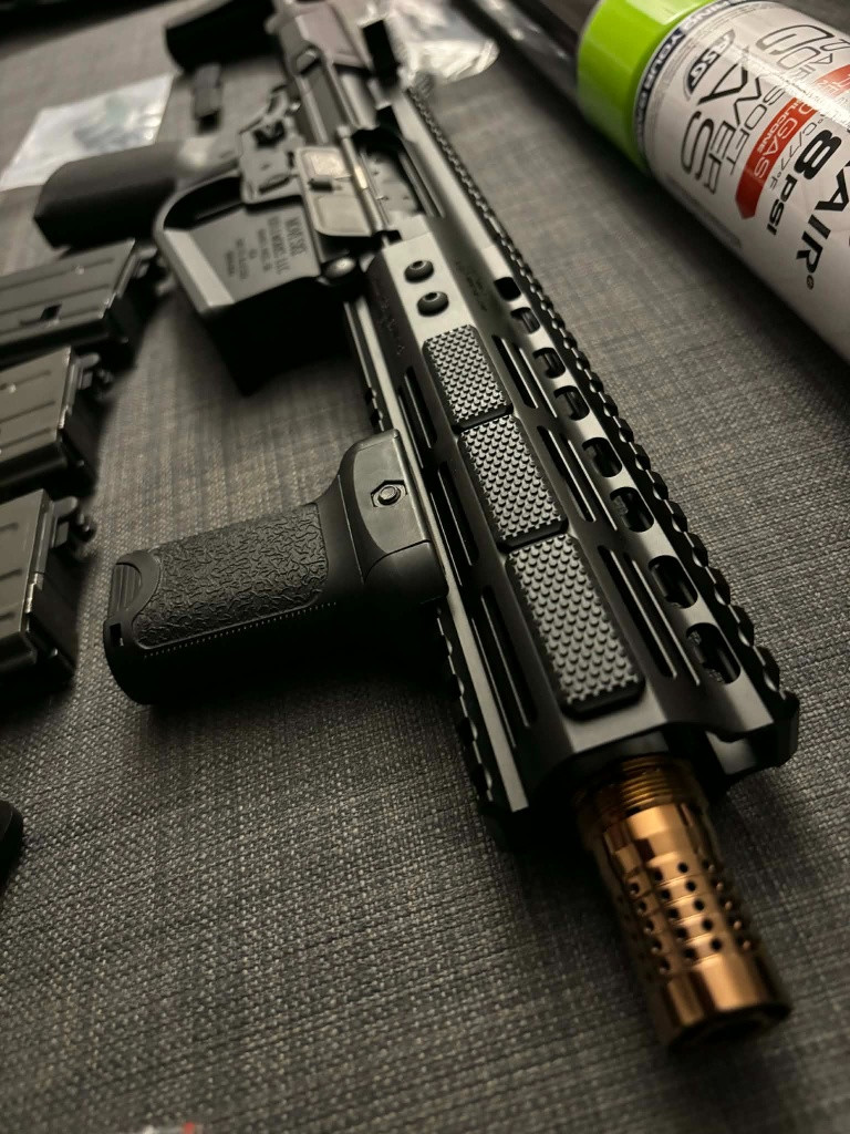 Zbran zakoupena par dni zpet, dnes prvni akce nastrileno +-250bb. Strilel sem 0.28g BB 60-70m krasne litaji bez problemu. Vratil jsem se k airsoftu po x letech a chtel jsem zkusit plynovku. Nesedi me a jdu zpet na AEG. Puvodni ceny: zbran 10 200kc, Mlok krytky 250kc, Grip 350kc, PTS pazbicka 800kc, ( 3 zasobniky ) 2x zasobnik EMG, 35ran MWS GBBR 3000kc a 1 zasobnik ktery byl ke zbrani, RedGas + GreenGas necham zdarma + origo pazbicka + origo krabice + origo vyterak + origo nahradni pruzina atp. === 15 000kc ,- === Prodam vse jako celek za 12 990kc – ( Fakturu / zarucni list od zbrane mam ) - pri prodeji do patku 27.brezna sleva 1000kc