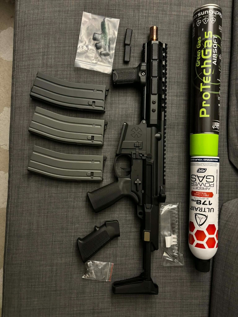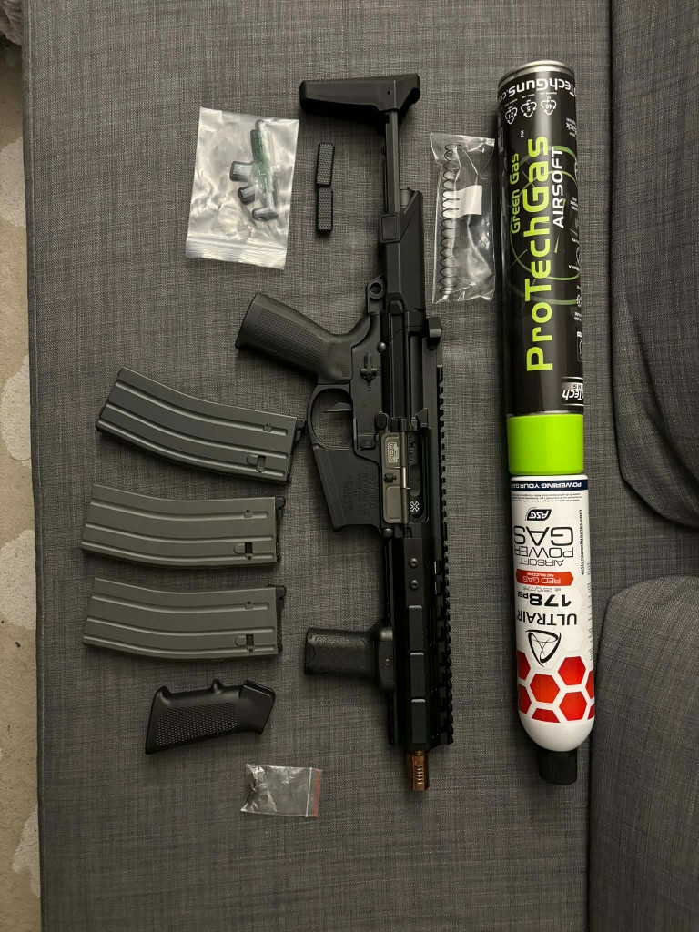 Zbran zakoupena par dni zpet, 22.3 nedele prvni akce nastrileno +-250bb. Strilel sem 0.28g BB 60-70m krasne litaji bez problemu. Puvodni ceny: zbran 10 200kc, Mlok krytky 250kc, Grip 350kc, PTS pazbicka 800kc, ( 3 zasobniky ) 2x zasobnik EMG, 35ran MWS GBBR 3000kc a 1 zasobnik ktery byl ke zbrani, RedGas + GreenGas necham zdarma + origo pazbicka + origo krabice + origo vyterak + origo nahradni pruzina atp. === 15 000kc === Prodam vse jako celek za 12 990kc – ( Fakturu / zarucni list od zbrane mam ) - pri prodeji do patku 27.brezna sleva 1000kc takze za 11 990kc !