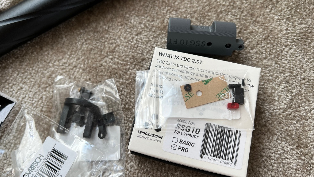 Full Thrust pro SSG10 + TDC pro Full Thrust od Tridosu + příslušenství kolem (viz fotky). Super stav, nevyužiju. Obsah balíčku: GGG10 Full Thrust Kit (kompletní - obsahuje FT vnitřní hlaveň, FT hop-up komoru, konec hlavně, FT vnitřní vymezovací vložku hlavně, FT hlavu pístu) 2× Full Thrust zásobník pro SSG10 Full Thrust Speedloader Nová náhradní Full Thrust gumička/bucking pro SSG10 Vnější hlaveň pro SSG10 (standard, s instalovaným TDC) Tridos TDC 2.0 Pro SSG10 Full Thrust komora (přiložím díly které zbyly z originální hopup komory + věci navíc od TDC - náhradní lepík pod regulační kolečko, šablona pro vrtání, hopup nuby, červík) Zbytek Full Thrust munice ve speedloaderu (0.62, bohužel občas nějaká 0.58 tam bude) Pokud nemůžete vyzvednout osobně, posílám přes Zásilkovnu.