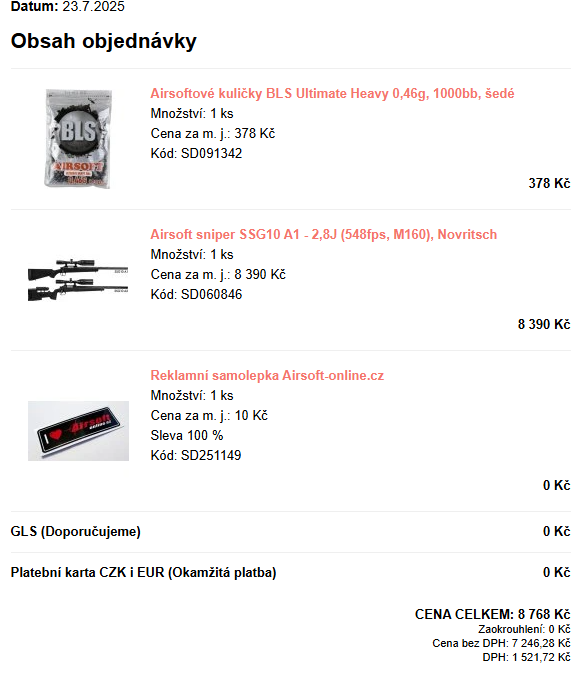 Ahoj, prodávám SSG10A1 2.8J + k tomu 2x zásobníky. Je pouze jednou hraná, kupovaná 23.7.2025 stav je jako nová. Naměřil jsem 2.8-3.0J s 0.46g. Důvod prodeje potřebuju extra nějaký cash, a na upgrade MP5ky a snipování mi tolik nevyhovuje. Cena Dohodou. Můžu poslat přes zásilkovnu nebo preferuji osobní odběr (Mladá Boleslav, Liberec). Pokud budete chtít video ze střelby, více fotek, fakturu není problém zaslat. Převážně komunikuji přes email protože bývám po nočních. :)