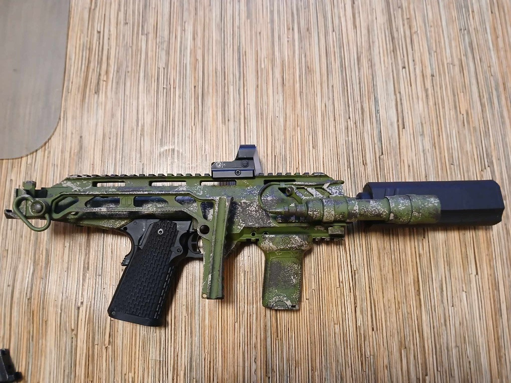 Prodám skoro nehranou plně funkční ssp5 v konverzy od Black Print, delší bronzova přesná hlavně s 0.30 1.7j s 0.40 kolem 2j, dodám jak je na fotce wadsn 1400l svitilna, nov Premium Red Dot + custom ochrane sklíčko, sig pažba, bcm gryp, prodlouzeni hlavne aspro, nov adapter na tlumic, 1x 50bb zasobnik 2x nov satandard zasobnik + HPA adapter, tlumic je tisknuty od black printa hlaven konci pred pulkou ( spoustu mista na nasvitny segment ) . co neni na ftocte origo hlaven, Universal Holster + adapter, Premium Red Dot Plate , zbraň je cela cerna jak v originalu, pouze konverze je striknuta krylonem, pazbu lze sklopit a zajistit, hpa adapter je k nemu potreba dokooupit vodicí listu na one stack pro plnoiu funkci .