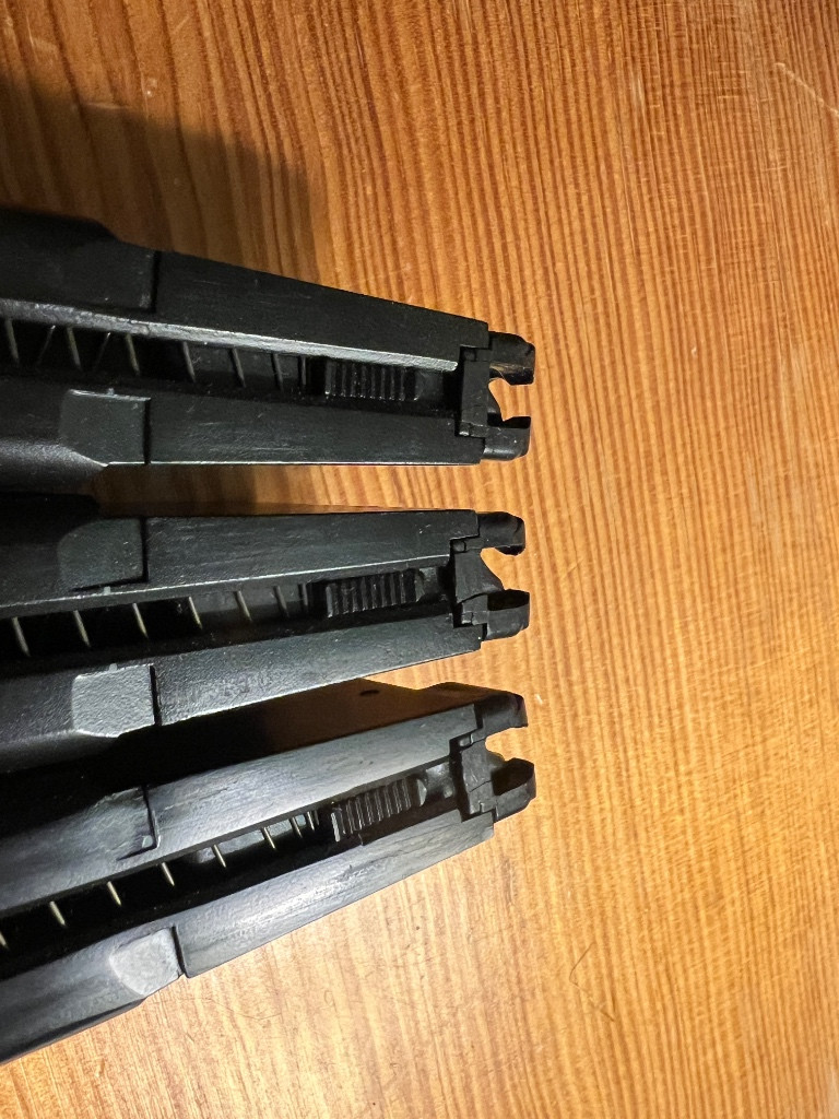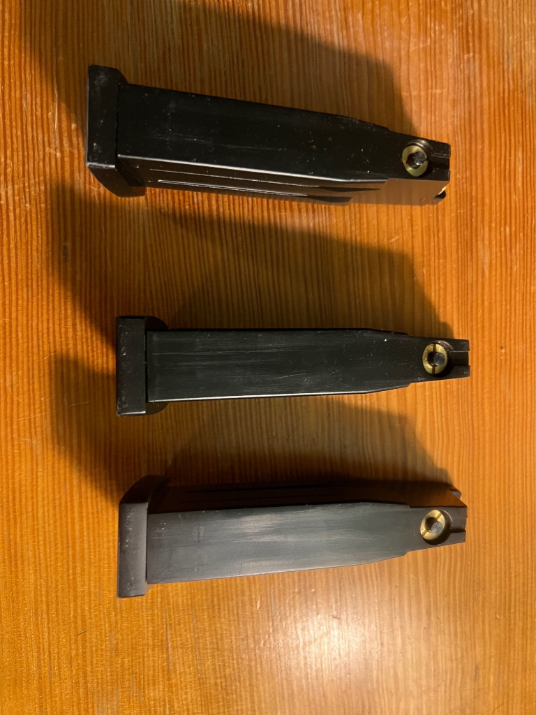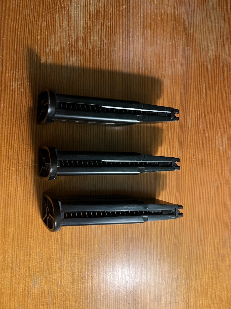 Nabízím k prodeji 3 zásobníky do SSX23. Všechny krásně těsní. Pár škrábanců mají z normálního používání viz fotky. Dva z nich mají prasklé “feeding lips” viz přiblížená fotka. U jednoho to znamená, že nepodává. U druhého to nemá vliv na funkci, ale bude nutné je vyměnit. Oprava za pár korun, prodávám, protože nemám čas to měnit. Snad někomu bodne jako levnější zásobníky. Prodávám jako celek. Praha osobě, jinak zásilkovna.
