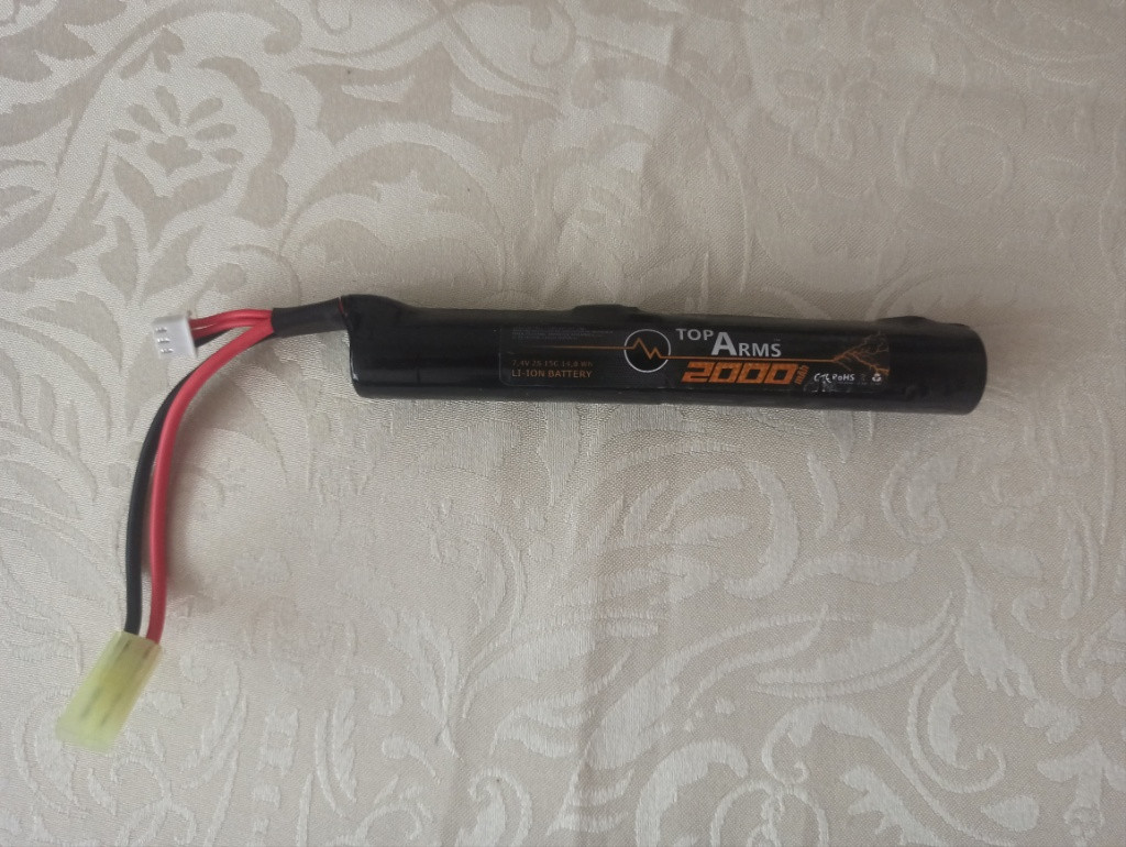 Prodám téměř novou lithiovou baterii od značky TopArms. Koupeno 17. 8. 2025, důvod prodeje: těsně se mi nevejde do zbraně (E&L AKs-74u). Rozměry: 135 × 19 mm Napětí: 7,4 V Kapacita: 2000 mAh Vybíjecí proud: 15C Konektor: malá tamiya Osobní odběr Praha nebo severní středočeský kraj, v případě zaslání Zásilkovnou poštovné hradí kupující. Původní cena: 388 Kč https://www.airsoft-online.cz/akumulatory-7-4v/li-pol- akumulator-toparms-7-4v-2000mah-15c-ak-mini-stick/ Kontakt SMS, WhatsApp nebo email, NEVOLAT prosím