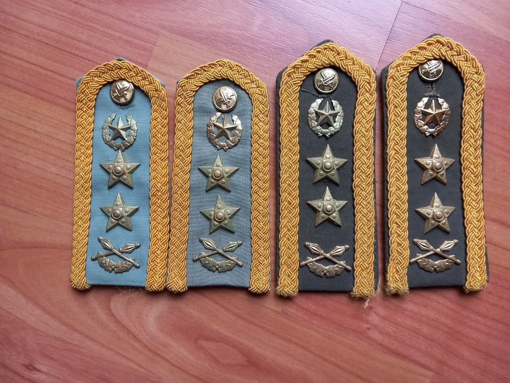 Originál (žádné domo) hodnostní výložky (nárameníky) generálporučíka ČSLA. Koupit si můžete 1 ks, pár nebo oba páry. Cena 1 000,00 Kč je vždy jen za 1 kus. Cena+poštovné nebo osobní odběr. Podívejte se i na další mé inzeráty. Při koupi více předmětů platíte jedno poštovné.