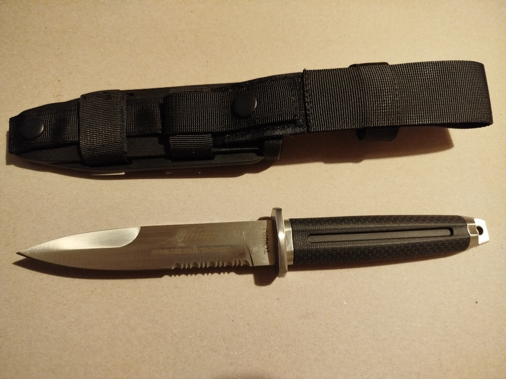 Prodám nůž Tokisu Ishida.Nový nepoužitý,pouze ve sbírce. Nerezová ocel 7Cr17MoV: Vysoce kvalitní ocelová čepel nabízí vynikající odolnost proti opotřebení a dlouhotrvající ostrost.Pevná čepel: Vhodná pro náročné úkoly v přírodě i na sebeobranu, čepel poskytuje spolehlivou průraznost a přesnost.Ergonomická rukojeť z gumy: Rukojeť z vysoce kvalitní gumy je protiskluzová a zajišťuje pohodlný a bezpečný úchop i v nepříznivých podmínkách.CNC technologie: Precizní zpracování pomocí CNC obrábění zaručuje dokonalou kvalitu a odolnost nože.Pouzdro MOLLE ready: Plastovo-nylonové pouzdro je kompatibilní s MOLLE systémem, což umožňuje snadné a bezpečné nošení v terénu.Dárkové balení: Nůž je dodáván ve stylové dárkové krabičce s magnetickým uzávěrem, ideální jako dárek pro nadšence taktických a outdoorových nožů. Technické parametry nože TOKISU Ishida 32381 – pevná konstrukce a odolnost Celková délka nože: 28,2 cm. Celková délka nože s pouzdrem: 31,2 cm.Délka čepele: 13,7 cm.Šířka čepele: 2,6 cm.Tloušťka čepele v nejtlustší části: 4,9 mm.Váha nože: 225 g.Váha nože i s pouzdrem: 329