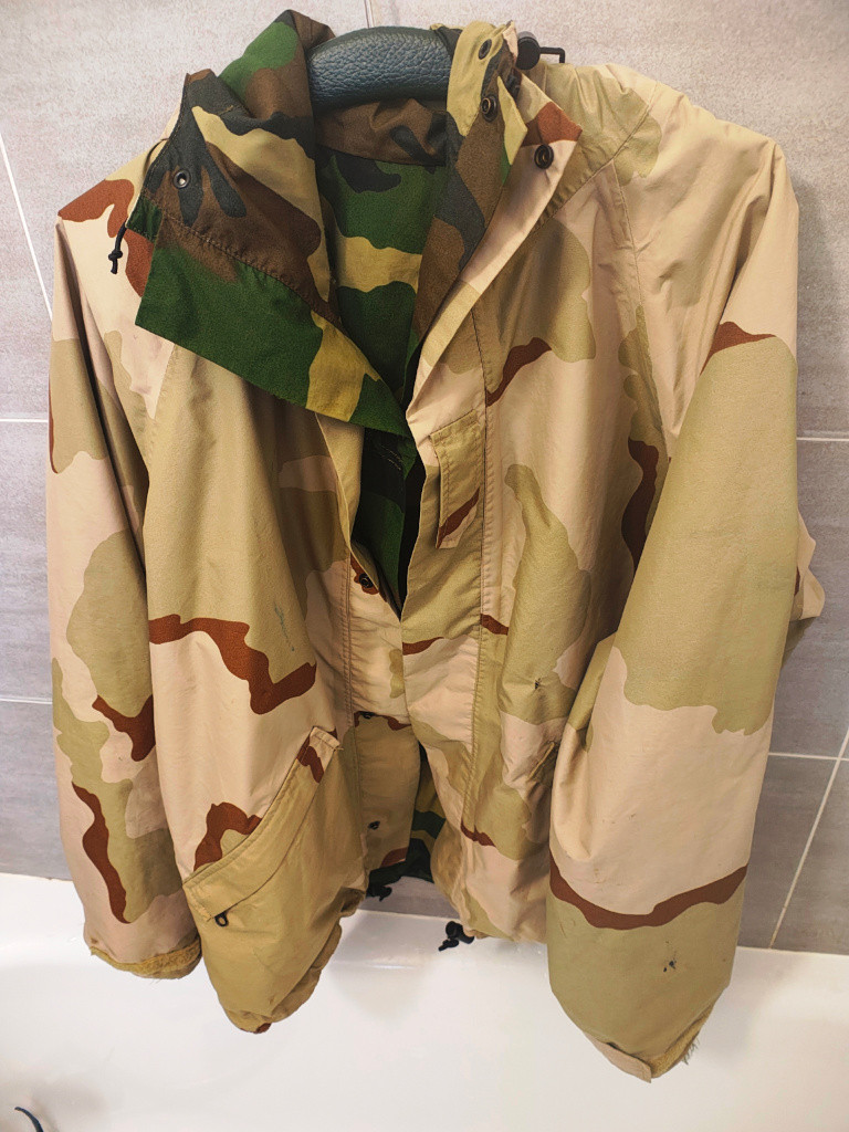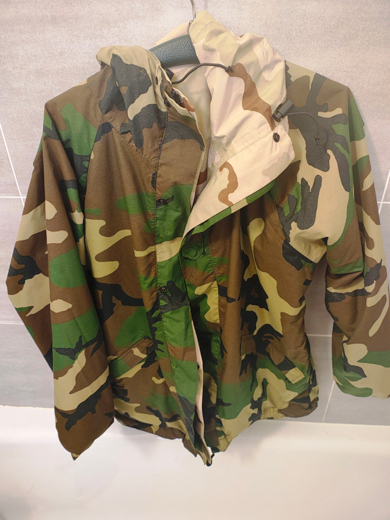 Prodám originální oboustrannou bundu od firmy Adventure Wear Texas. Z jedné strany je maskování 3DCU a z druhé Woodland. Velikost M. Na 3DCU straně je malá dírka a čárka od barvy viz. foto.