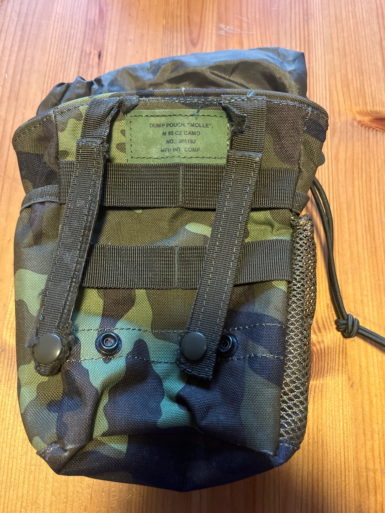 Malej odhazovák MFH ve vz. 95, popruhy jsou mírně oříznutý protože to bylo namašlený na NPP 2006, který má užší Molle. Nicméně pevnost je furt dobrá a daj se v nejhorším snadno vyměnit. Možno poslat. https://www.army-surplus.cz/odhazovaci-vak-vz-95-acr- odhazovak-dump-pouch-molle-m95-cz-camo-mfh-30619j/