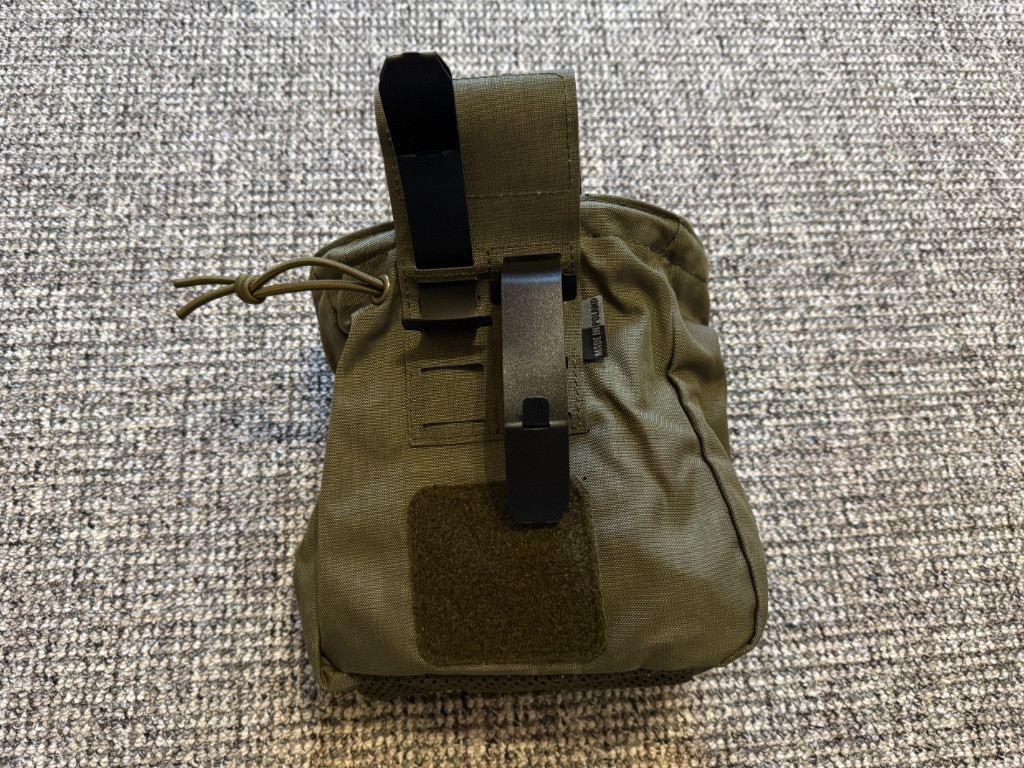 Nabízím zmíněný odhazovák barvě Ranger green, standard vazba Molle nebo na opasek. Jde složit do malého objemu, že nezabírá místo, stahovací vršek proti zabránění vypadnutí věcí. Jednou venku.