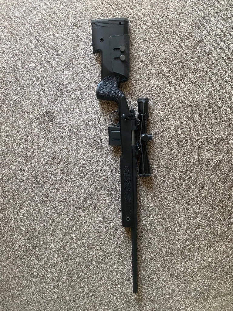Zdravím,chtěl bych prodat svoji odstřelovačku. Mám dvě a stouto nehraju tak nechci aby se na ní jen tak prášilo. Je to m40 od značky Ares je celá v základu chtela by trochu vylepšení tak doufám že si najde nového majitele. Zbraň má nějaké lehké škrábance ale nic vážného. Cena uvedená bez optiky-s optikou +600 O ceně se dá jednat stačí se ozvat prosím spíše SMS Airsoftpro:Odstřelovací puška M40 je slavná americká záležitost, která se v různých provedeních používá již od šedesátých let. Tato MCM 700 od firmy Ares je další z řady jejich pušek, které zaujmou vnějším zpracováním.
