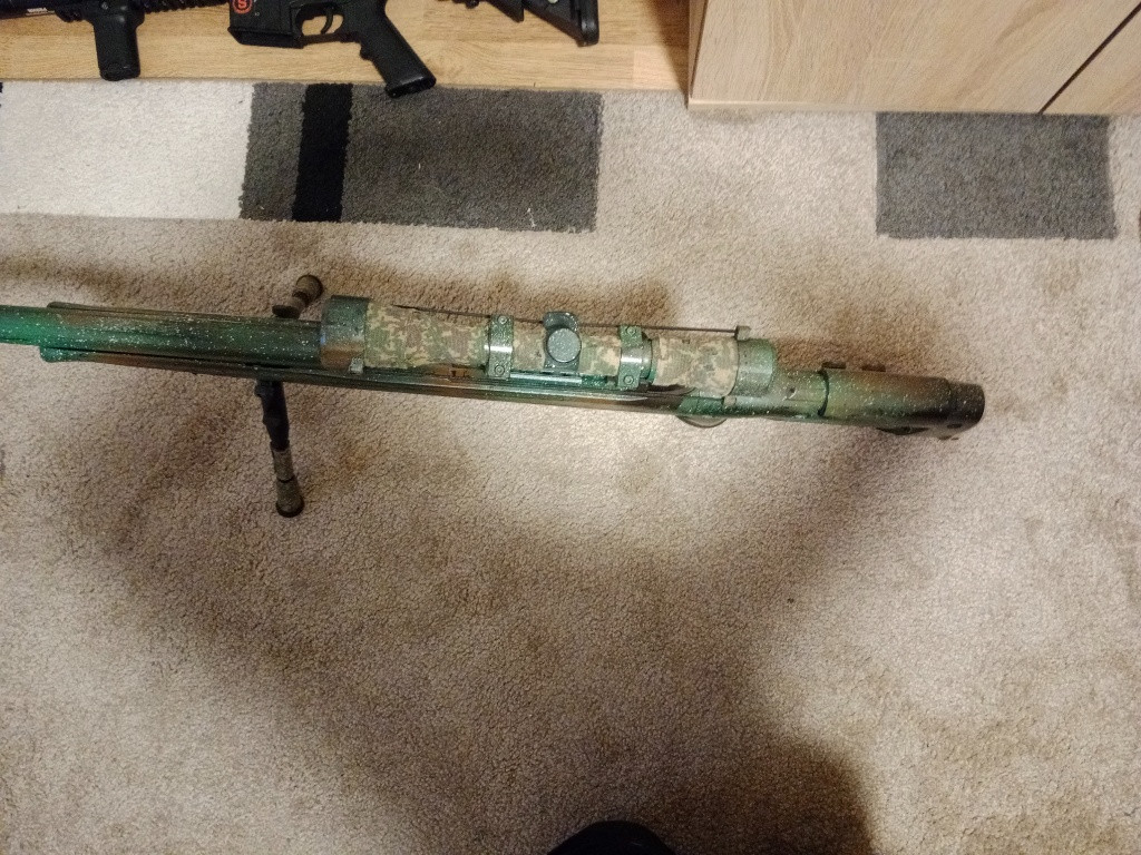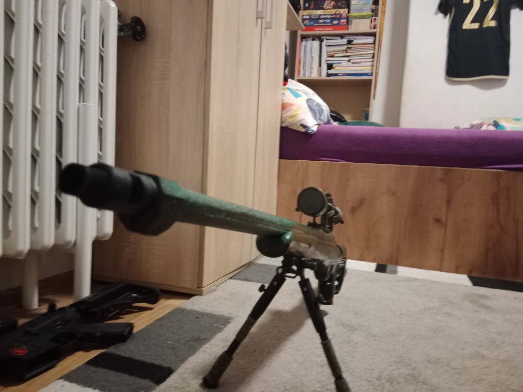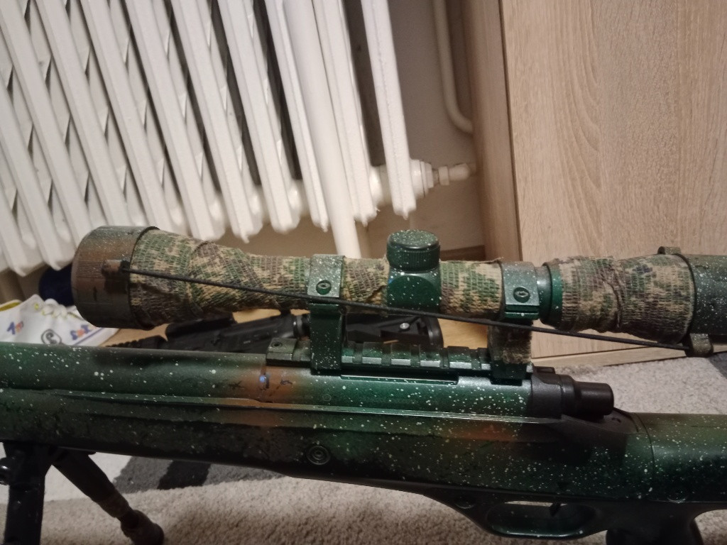 Se zbraní prodám i skope a dva zásobníky na 23 ran Do zbraně jsou vhodné kuličky 23 g. Navíc jsou k tomu nožičky. Zbraň je stará 2,5 roku.