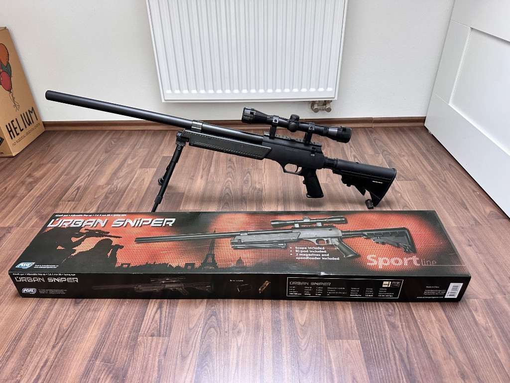 Popis:Odstřelovací puška Urban Sniper - černý, celokov, ASG