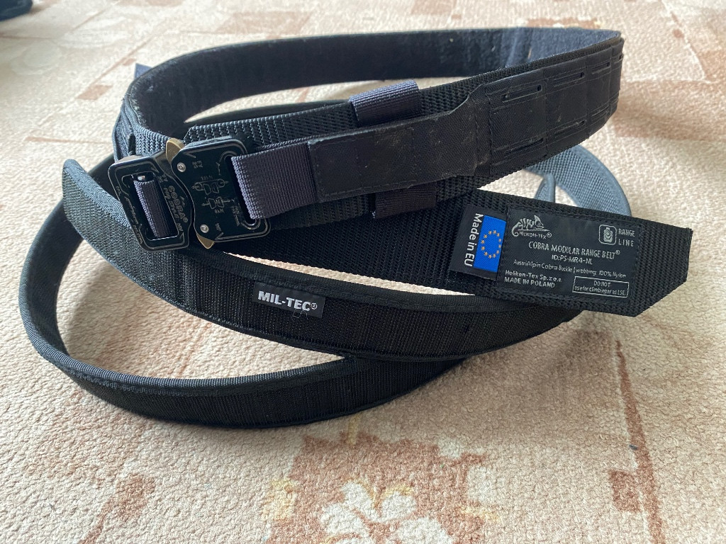 Taktický opasek od helikonu ve velikosti XXL a k němu pásek se suchým zipem jako základna.