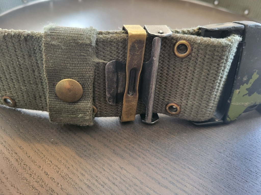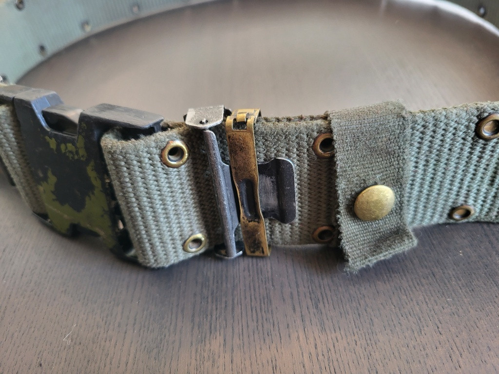 Klasický široký nylonový opasek s okovanými oky ( dvě nad sebou ), plastovým zapínáním. Opasek se používá jako součást nosného kompletu ALICE s možností upevnění treků a různé výstroje pomocí "alice" klipů. Armádní originál. Rozměry : šířka 6cm, délka cca 112cm
