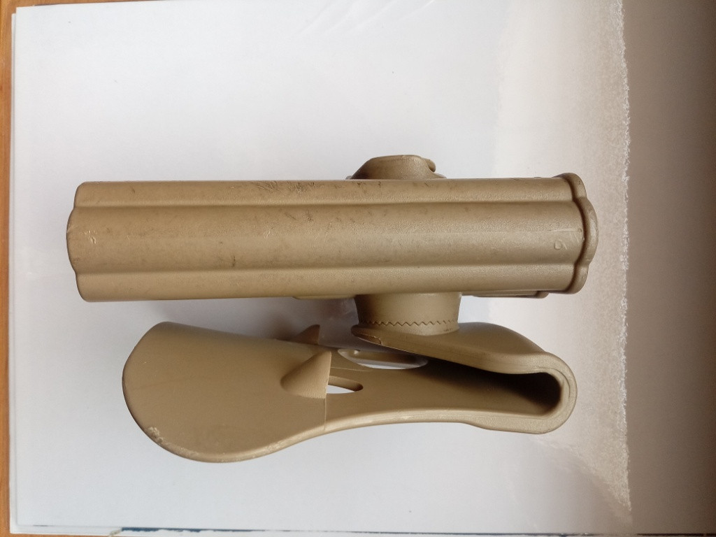 Pouzdro je používané,ale bez poškození.K pouzdru je také průvlek na opasek který je stavitelný dle šířky opasku.Pádlo je na šířku opasku 5cm.Pouzdro je nastavitelné na různé úhly nošení díky otočnému čepu mezi pouzdrem a pádlem/průvlakem.