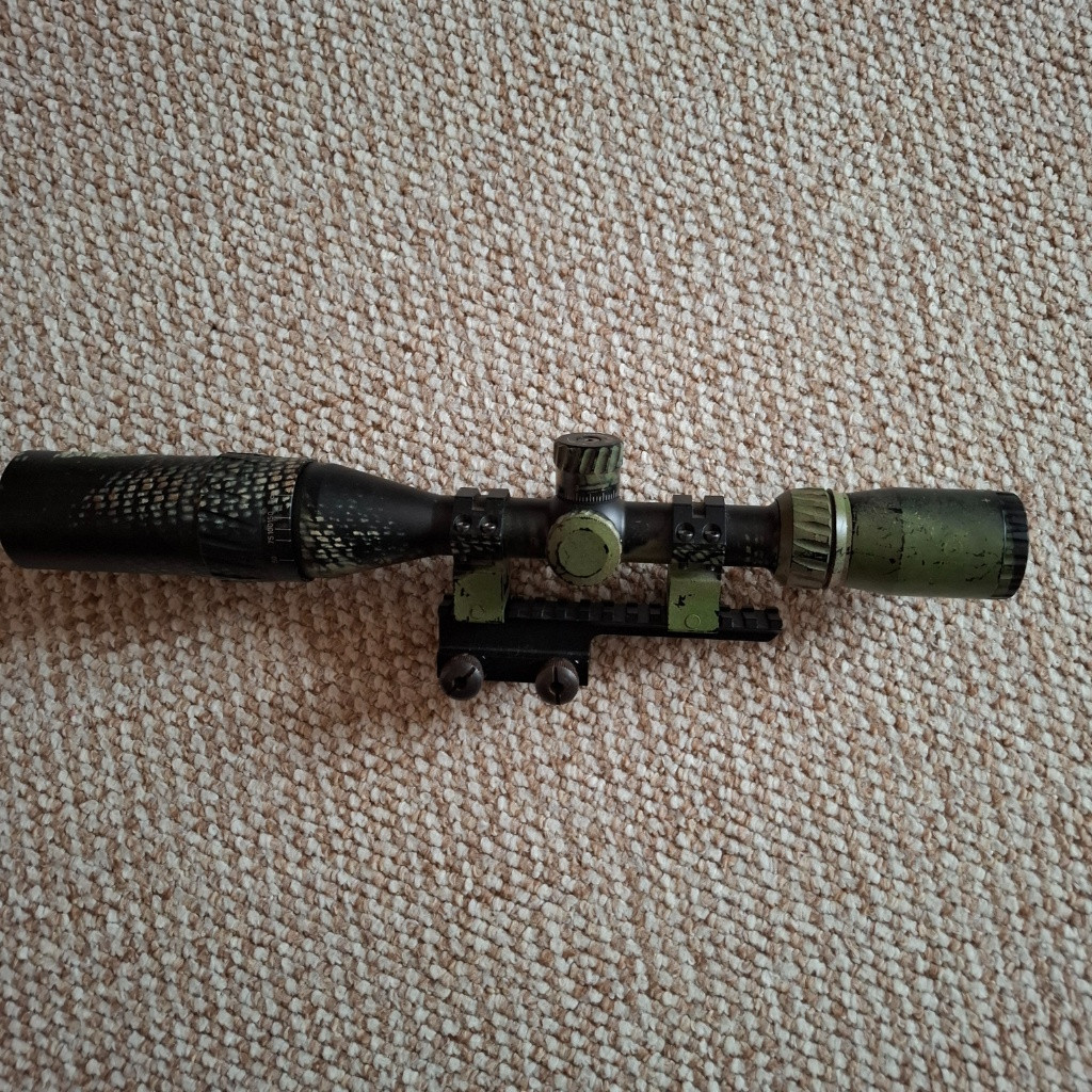 Theta optic 40x32 vhodná na snipu nebo DMR . Je tam sluneční clona,přídavná RIS na zvýšení s RIS kroužky. Optika má podsvícení,nastavitelné domečky s pamětí.