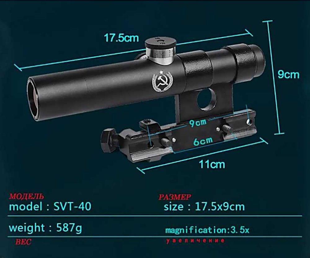 Puškohled je Nový ! ...Zaměřovač PU 3,5x22 je určen pro Mosin Nagant a SVT je včetně montáže na Mosin Nagant. Zesílená konstrukce pro velké zpětné rázy...Novovýroba ..... Poštovné/balné při platbě předem = 120 kč........Na dobírku = poštovné 170 kč možné po tel. Domluvě,nebo osobní odběr (v městě Kadaň psč.432 01)....