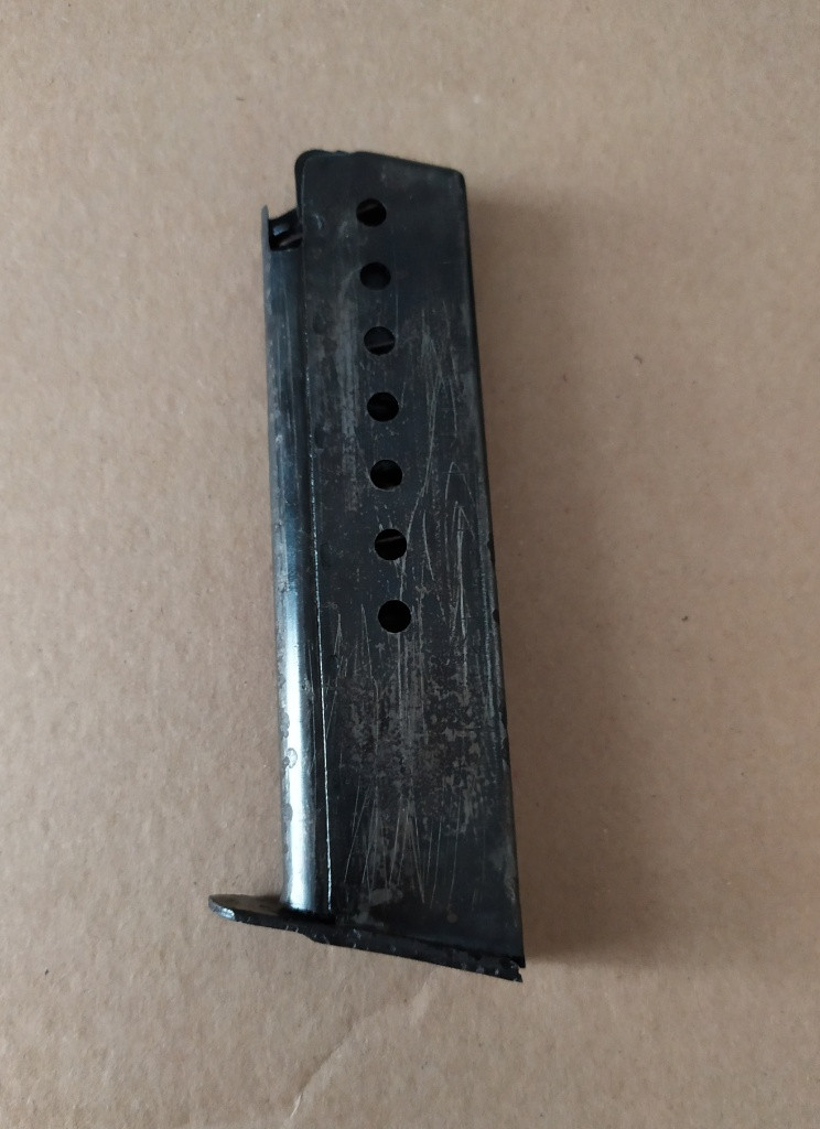 Prodám originál válečný zásobník do německé pistole Walther P38. Neznačená koncoválečná výroba. Pružina v brynýru jako nová. Viz. foto.
