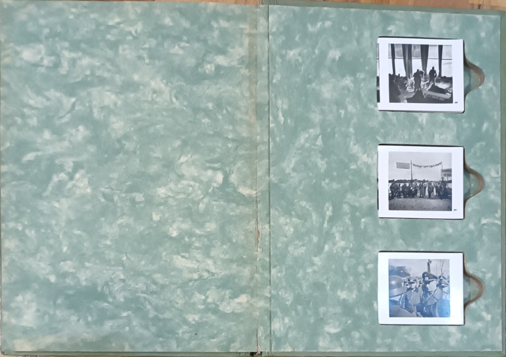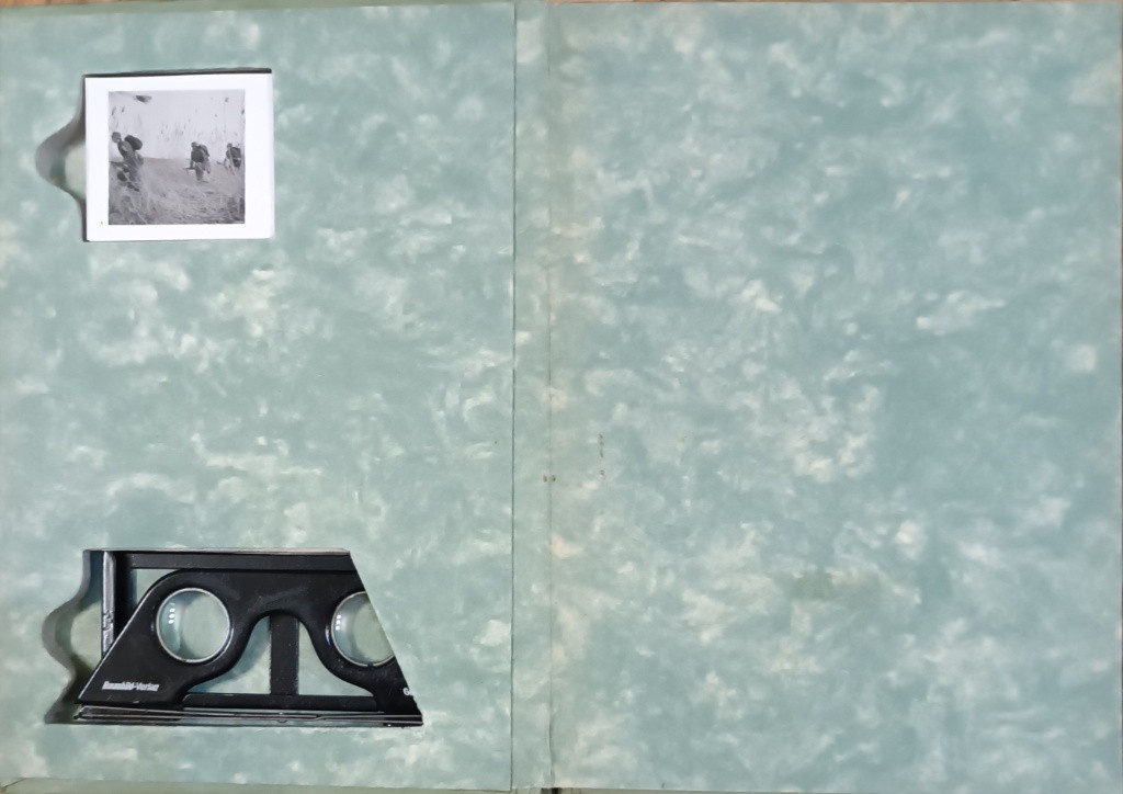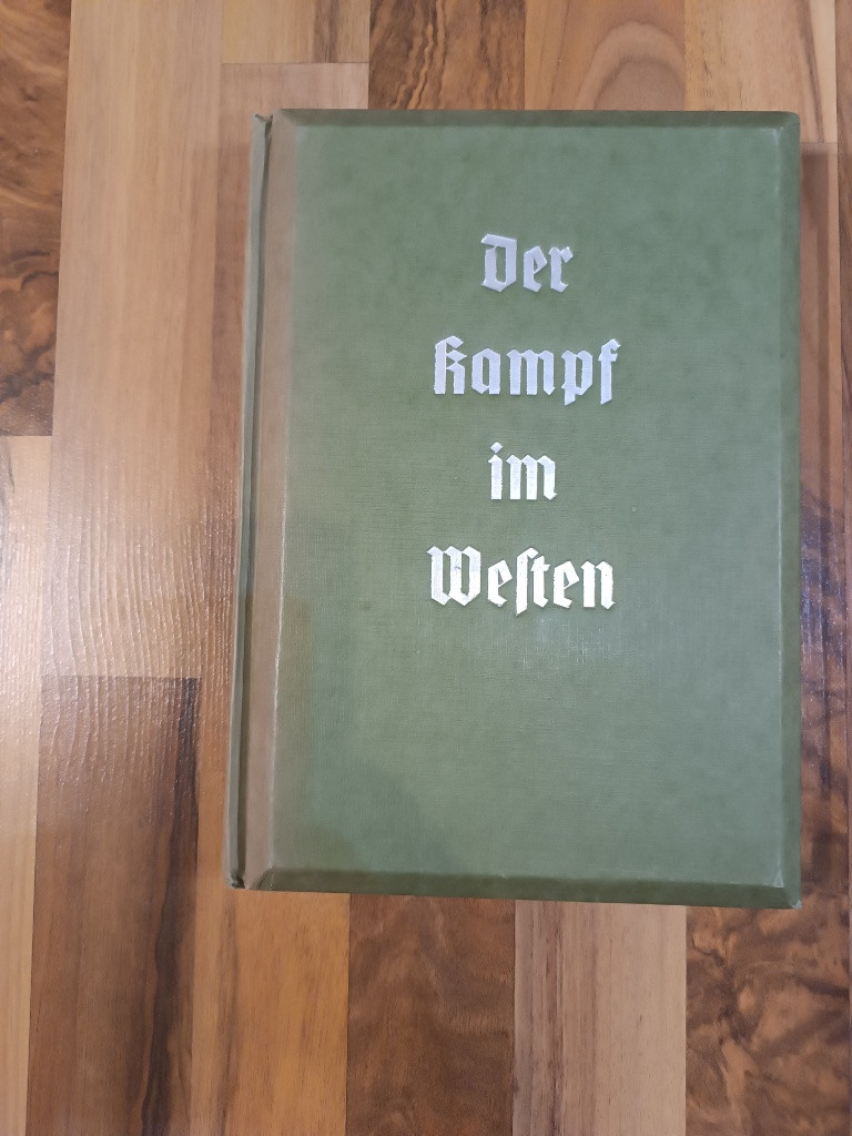"Tato 3D kniha s pevnou vazbou o rozměrech 8 a 1/2 x 12 palců (21,7 x 30,2 cm) byla vydána v roce 1940, poté, co se Francie musela vzdát Němcům a britské expediční síly se musely vrátit na svůj ostrov. Kniha obsahuje 100 fotografií ve stereoskopickém režimu. Kniha je dodávána s originálním skládacím prohlížečem, který při prohlížení fotografií působí trojrozměrně! Obrázky a prohlížeč jsou uloženy v přihrádkách uvnitř přední a zadní obálky. Díky tomu jsou obálky poměrně silné a těžké, a proto je mnoho z těchto dochovaných stereoskopických knih poškozeno. Naproti tomu tento vynikající výtisk je ve velmi dobrém stavu a bude skvělým přínosem do sbírky vzácných originálních historických artefaktů Třetí říše!" Žádná propagace, slouží pouze pro sběratelské účely."Velmi pěkný stav!