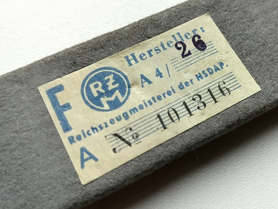 | Závěsník na bodák Mauser Wehrmacht hnědý značený RBNr. |