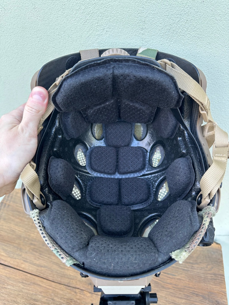 Ahoj, z důvodu nevyužití nabízím tuhle karbonovou high cut fastku s bohatým příslušenstvím. Skořepina je karbonová jako u originálu, polštářky jsou ve stylu Lux Liner, NVG shroud i raily mají značení Ops-Core. Na helmě je TMC multicam potah, Helstar 6 strobe (verze se zelenými + IR diodami) a S&S montáž pro SF svítilnu + Kiji IR přísvit (vše kopie samozřejmě). L4G24 není v ceně, ale kdyby někdo hodně chtěl komplet, možná bychom se dohodli. Kiji IR hlavici můžu bez vlivu na cenu vyměnit i za klasickou SF svítilnu s bílým světlem. ***** Helma je jako nová, nehrál jsem v ní, jen jsem se v ní párkrát prošel s nočním viděním. Jen ta samotná holá helma se na Ali prodává lehce pod 8000 (včetně DPH, bez cla a poplatků kolem), takže chci 8000 za komplet, při rychlém jednání drobná sleva/doprava zdarma. ***** Možno prodat také holou helmu bez příslušenství, ale preferuji poslat to do světa jako komplet.