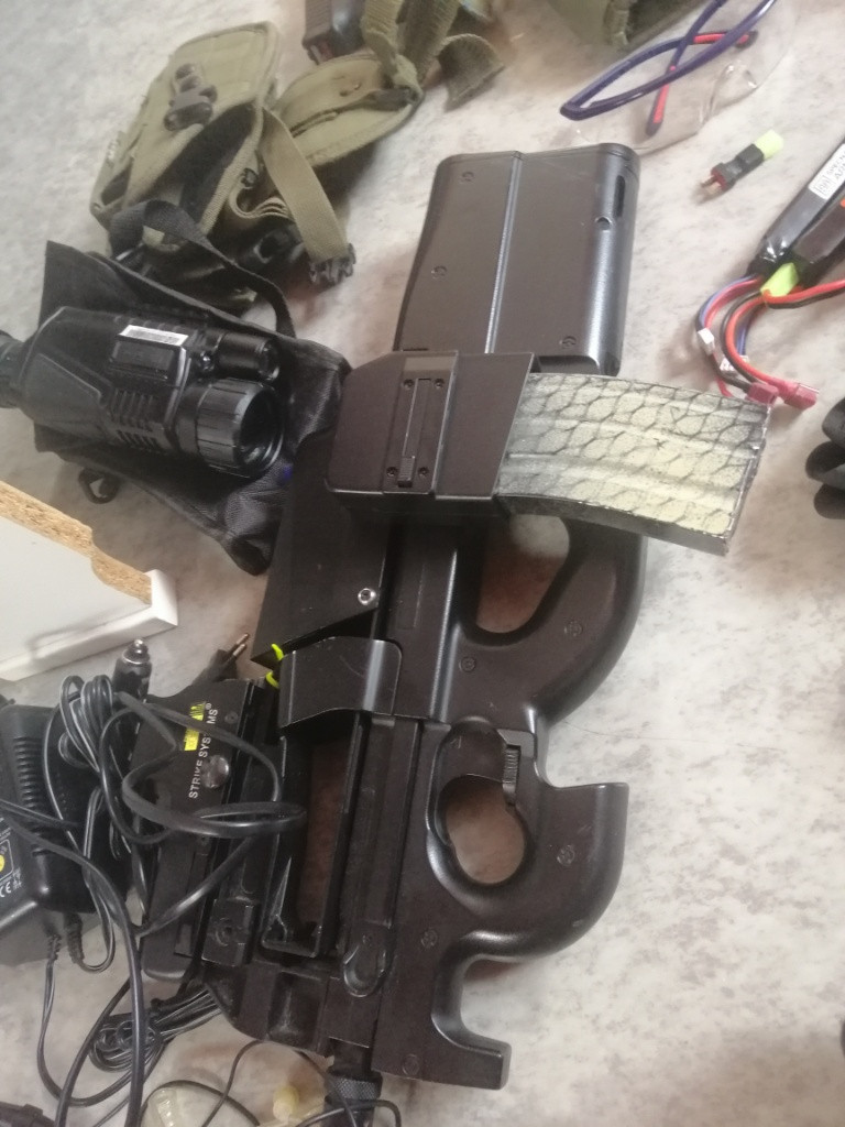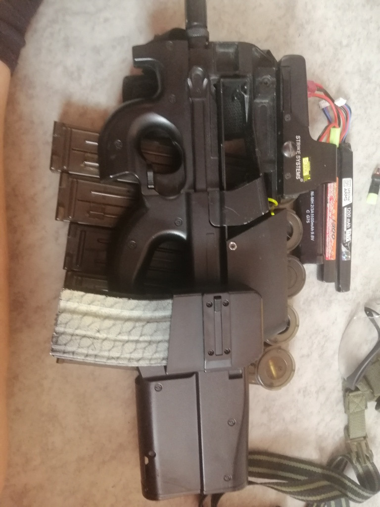 Ahoj. Posílám dál do světa svoji P90 1,7J s originální krabici a náhradní M 90 pružinou pro arény který mají nižší limity. Vše je v základu, takže vhodné pro začátečníky nebo na projekt k zbrani je baterie NIMH 1350mah 8,4 V, 2 tlačné zásobníký, 2 točné zásobníky, redukce na M4 zásobníky s kapacitou 1500 kuli. Vše jako nové. Používala se jako záložní poslední 2 roky. Cena za vše 5000. Dohoda možná. Mám WhatsApp. Pište volejte