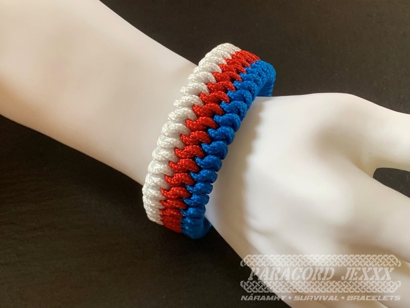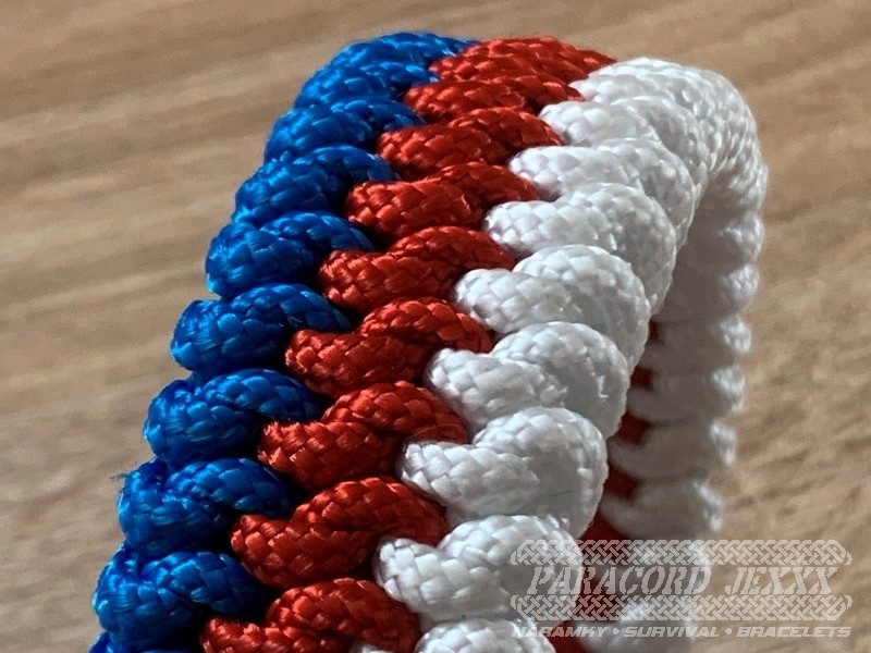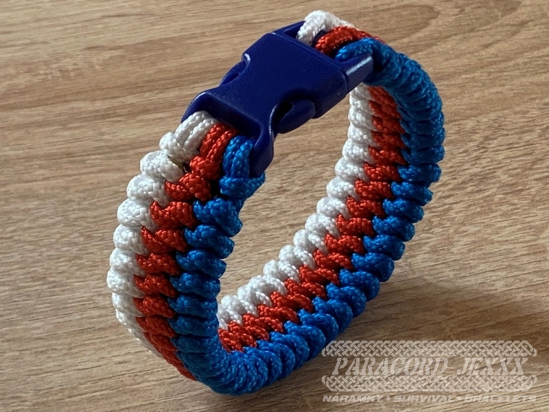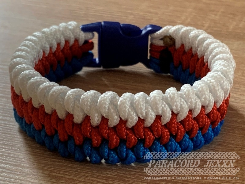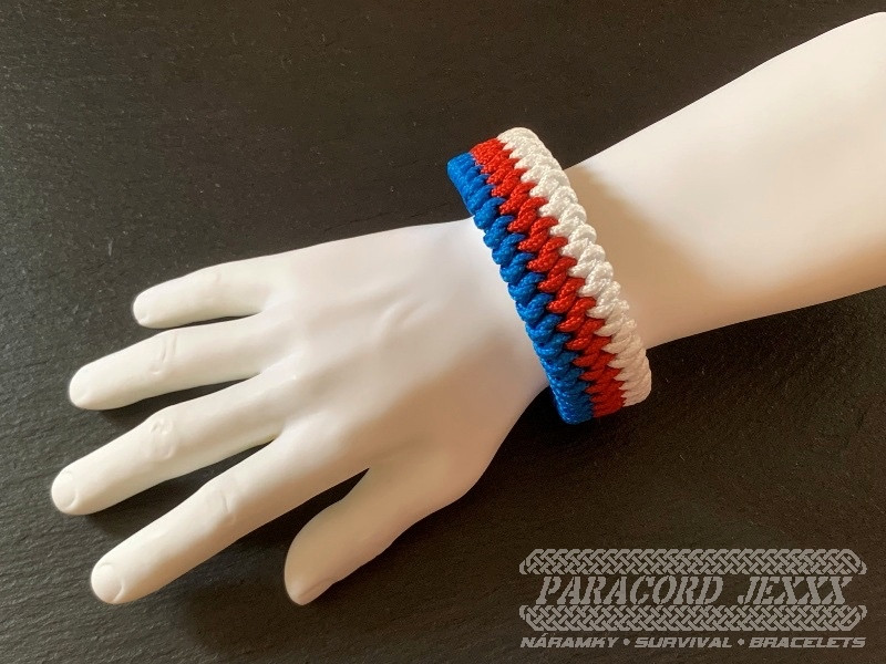 Popis:Paracord náramek (21 cm) Czech Tricolor