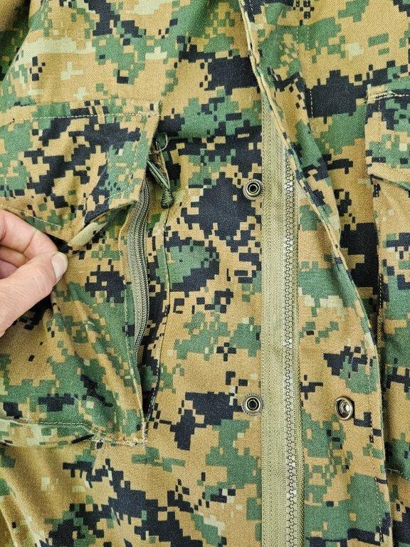 Prodám parku perfektně profesionálně udělanou podle M65. Vel. L. Materiál originál USMC NyCo twill. Vychytávky: kapsy na prsou jsou od středu předního dílu (směrem od hlavního zapínání bundy) přístupné skrytým zipem - kdo ví jak blbě se leze do kapes shora když má člověk batoh, ten rozumí :). Vnitřní kapsy na zip na spodní části rukávu - opět dobře přístupné s batohem. Podšívka z profi klouzavého materiálu - ta bavlna u originálu strašně drhne. Bunda nemá kapuci - tu jsem nechtěl protože celkem k ničemi není. Je v perfektním stavu - švy, zipy, žádné poškození. Prodávám protože už tolik neběhám po lesích a tak redukuju výbavu. Zásilkovna nebo osobko v Praze.