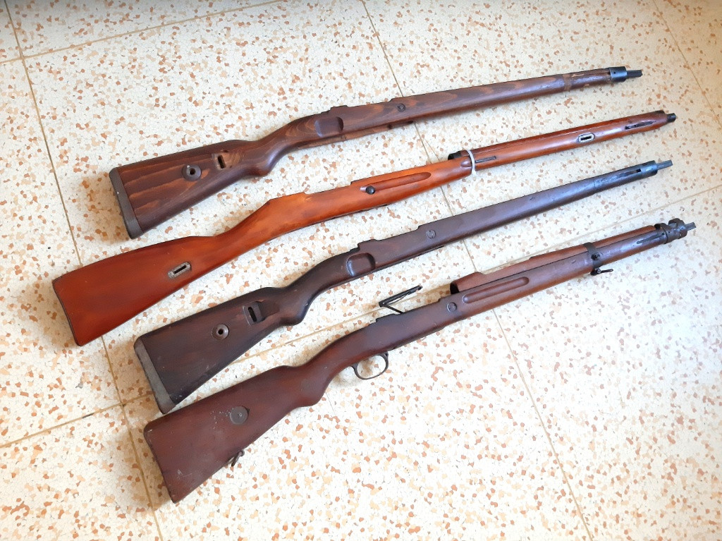 Prodám pažby: Mauser K98k (bílá lepenka, Dot) 6000,- Mosin 4300,- Mauser K98k 3000,- Mauser vz. 24 (sčíslovaný.. pro wehrmacht) 8000,- (komplet, včetně nábojové schránky)
