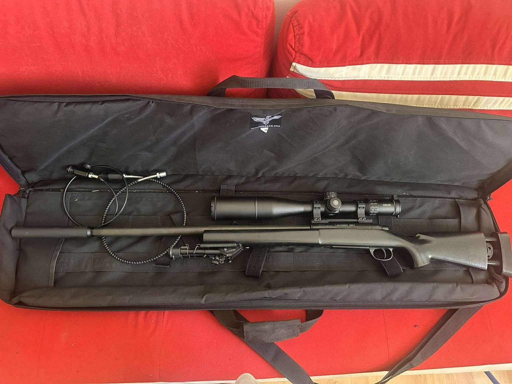 Prodám ultra přesnou PCP vzduchovku Altaros M24 osazenou optikou hawke frontier 34 ffp 5-30x56 na monáži Weaver, bipodem a original tlumičem se kterým není výstřel absolutně slyšet. A samozřejmě láhev a hadice k plnění. Při rychlém jednání sleva.