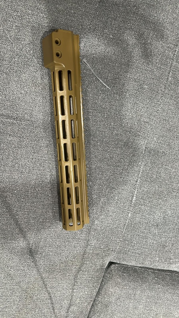 Prodám předpažbí 13.5 palce od značky Cyma kopie předpabí (Geissele)kupováno na evike, stříklé barvou RAL 8000 původně černé. Mohu přidat hlaveň standardní 14.5 palce za 350 kč.