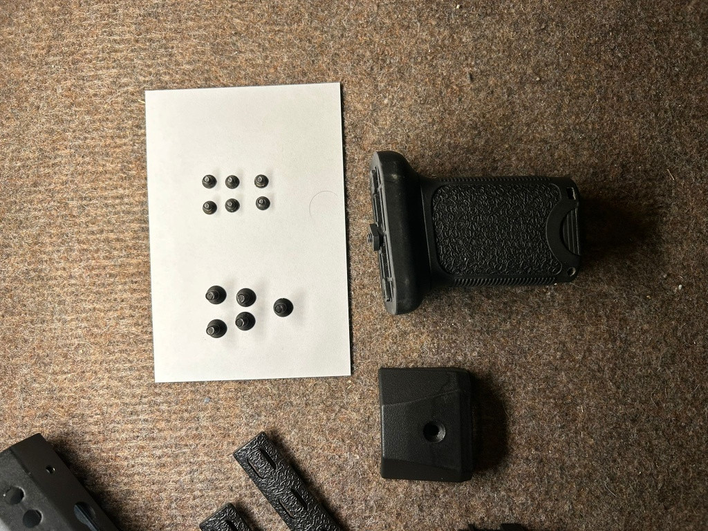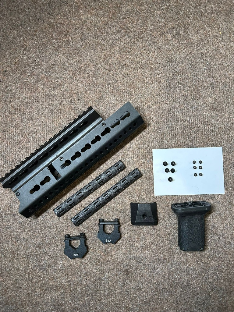 předpažbí (M-lock / Keymode) na AK 105 včetně veškerého příslušenství jako jsou šrouby, upevnění , zakončení , M-lock ručka