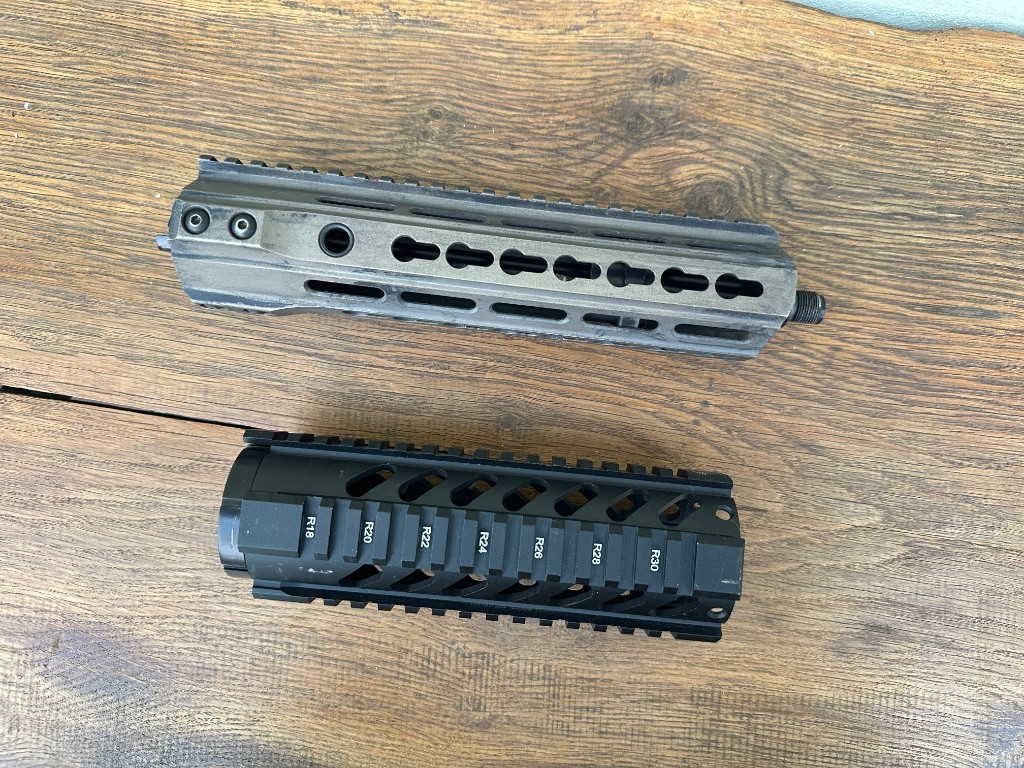 Ahoj, chtěl bych nabídnout dvě nevyužitá předpažbí na M4/AR platformu, oboje kovové. První je origo keymod předpažbí z ICS CXP-UK1, použité, jsou na něm zbytky černé barvy, je včetně matice a středícího kroužku, přidám i vnější hlaveň odpovídající délky - sedělo mi i na zbraně od jiných výrobců. Délka 23 cm. ***** Druhý je freefloat CNC quadrail v černé barvě, myslím že je nový, jen trochu zaprášený od skladování. Délka 19 cm. ***** Dost dlouho mi leží doma a rád je pošlu k někomu, kdo je využije, cenu nabídněte. Zasílám přes Zásilkovnu nebo PPL.