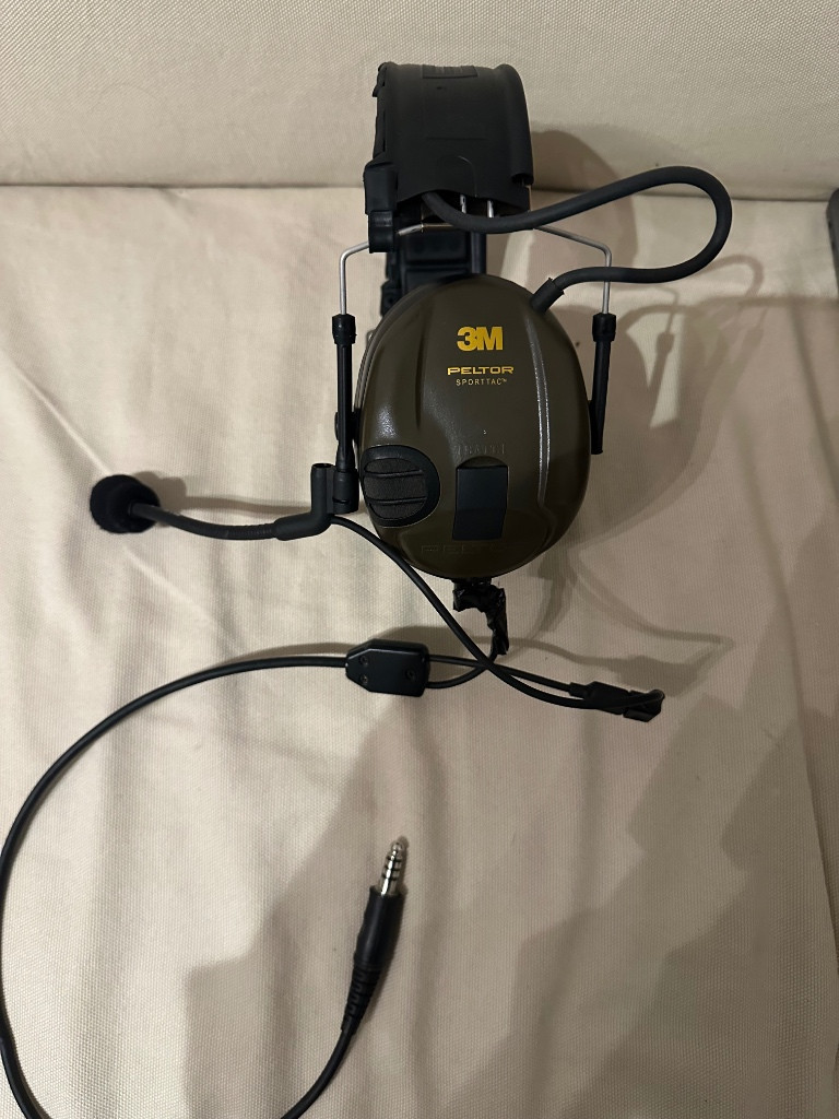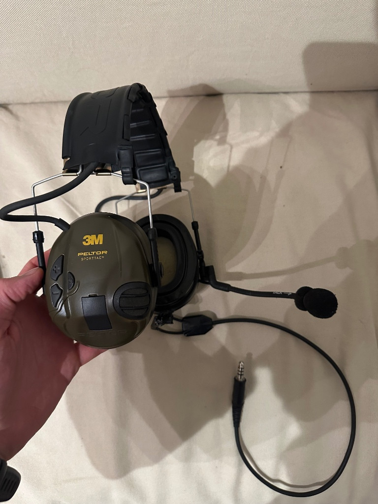 Peltor Sporttac, použitý, nezneužitý, super stav. Gelový náušníky, původní bych mohl dohledat a dodat. Mic a kabel přihodím zájemci, ale nemohu na 100 % potvrdit funkčnost - nemám ptt.