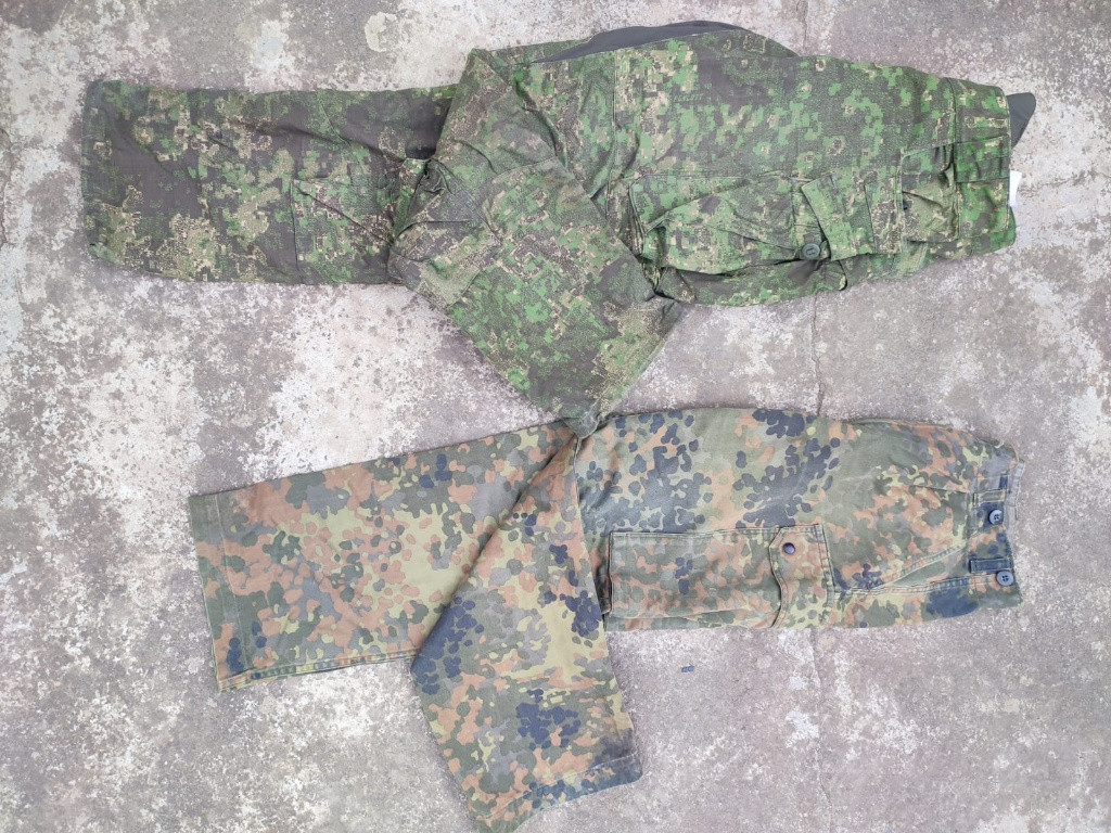 Pencott wildlands - nenošené, špatná velikost s vloženými ,- kolenními chrániči. Značka helikon-tex, velikost M 1200,- Flecktarn - velikost M (menší M), záklaďácké fleky - 200,-