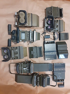 Periskopy, brýle pro noční vidění, vyhřívané brýle. Cena za vše z fotografie.