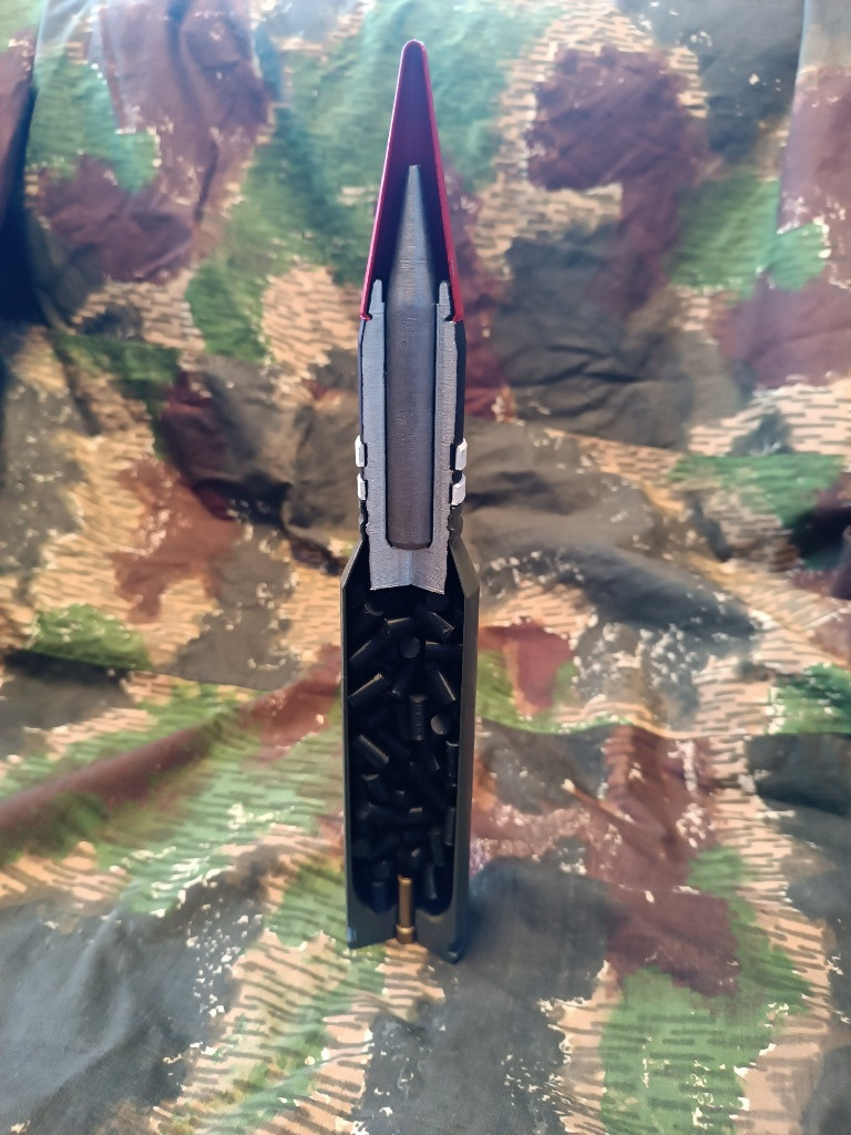 PGU-14/B (DU) je munice vyvinutá pro letoun A-10 Thunderbolt II a jeho kanón GAU-8. Tento typ munice s penetrátorem z ochuzeného uranu je známý svou mimořádnou účinností proti obrněným cílům. Měřítko 1:1 Vyrobeno pomocí 3D tisku, povrch je zahlazený a ručně barvený. Materiál – 100% PLA plast, neobsahuje žádné výbušné ani jinak nebezpečné části. Zaslání možné balíkovna, zásilkovna za 89kč ( případná dobírka + 29kč ) popř osobní předání Brno nebo dle domluvy. Kontakt prosím na email tel smyšlený.