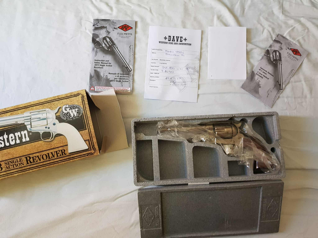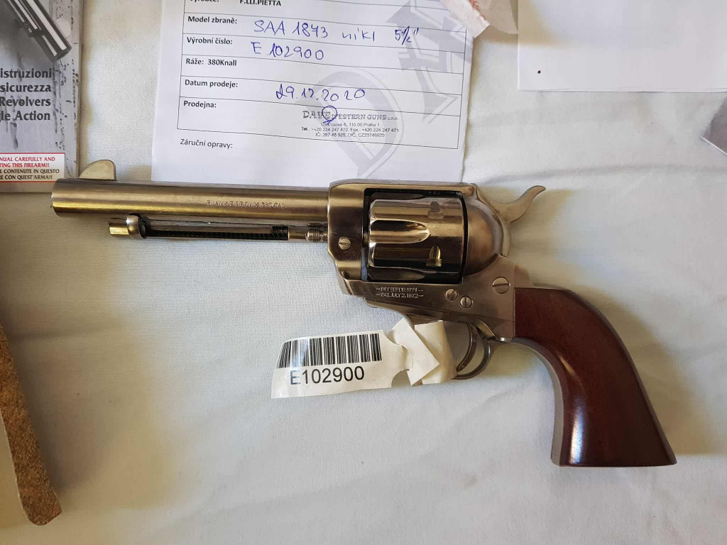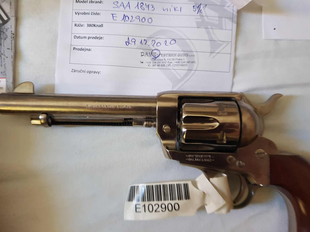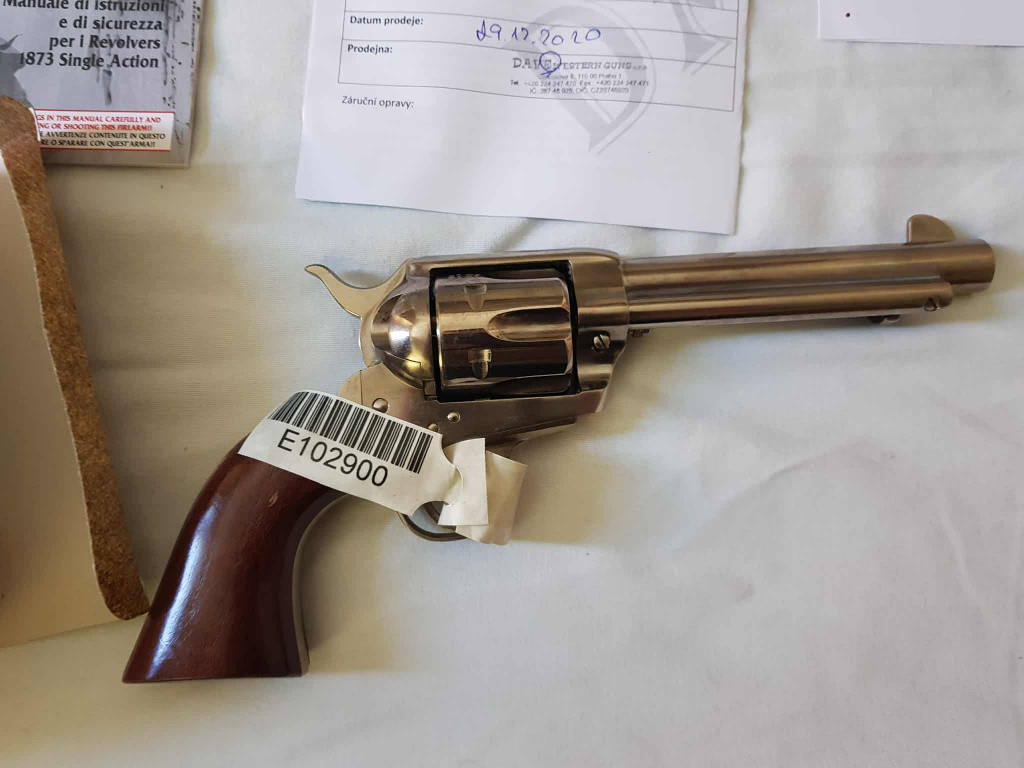 Prodám akustický revolver PIETTA SAA 1873 v niklové úpravě. Ze zbraně nebylo nikdy vystřeleno, jen byl použit jako doplněk ke kostýmu. Revolver je vyroben ze stejného materiálu jako revolver na ostré náboje. Jen místo klasických nábojů, nabíjíte poplašné náboje. Kategorie D od 18 let, bez ohlášení na PČR.