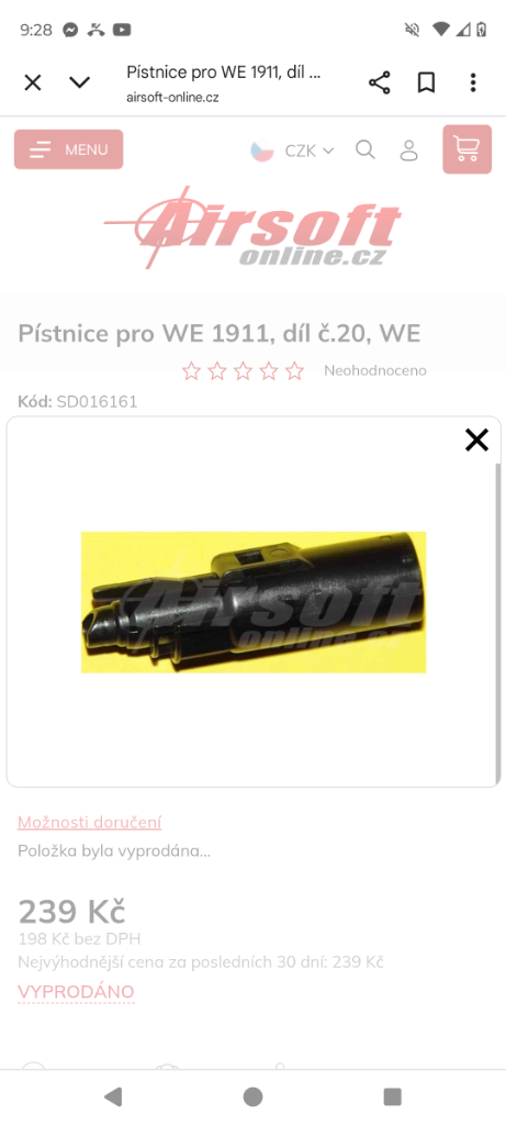 Zdravim, shanim origo WE pistnici pro WE 1911 (desert warrior) , prumer vnitrku musi byt 13.5mm, nabzizim cenu jako za novy kus , dekuji za nabidku.