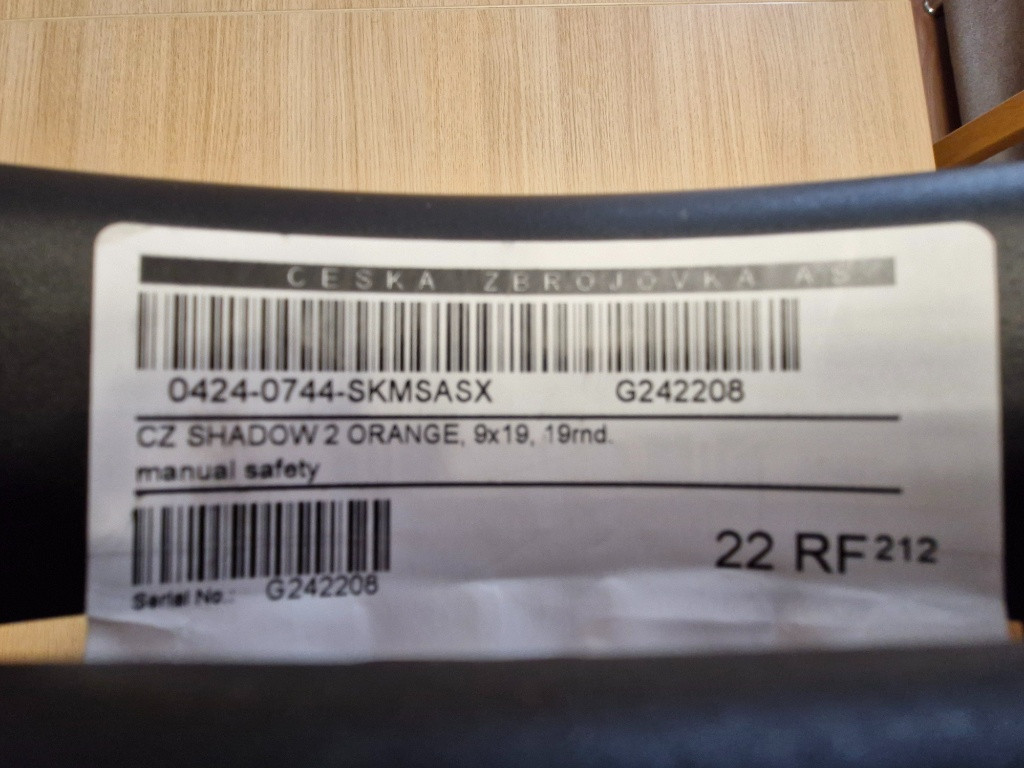 Popis:Pistole CZ SHADOW 2 ORANGE, 9x19, 19rnd.