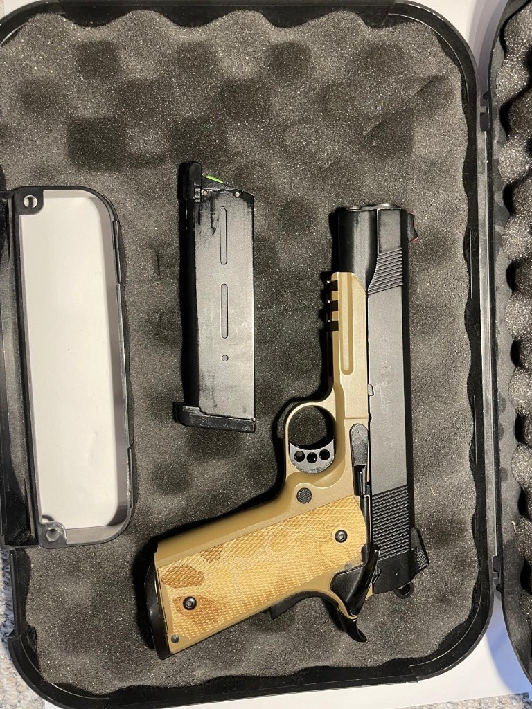 Prodám plynovou pistoli na greeen gas M1911 Gladiator Crixus. Jedná se o pistoli v barvě coyote od značky APS. Zbraň má blow back, součástí zbraně je zásobník Turbo na 25 kuliček.Úsťová rychlost 320 FPS. Zbraň je plně funkční, jen ze zásobníku utíká plyn, takže by bylo potřeba zásobník opravit či koupit nový. Důvodem prodeje je nepoužívání. Zbraň byla používána na akcích, takže jsou videt známky po používání(lehké škrábance). Se zbraní jsem byla plně spokojena jde o přesnou realistickou repliku. Ke zbrani přidám kufřík na ni ,jednu plnou a jednu poloplnou lahev s green gas a taktické pouzdro stehení černé nastavitelné. Ke zbrani mám i původní krabici.