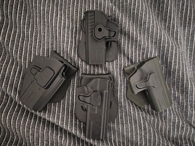 Polymerová pouzdra pro pistole. Zánovní, různé stupně použití. Opaskové platformy ("pádlo"). GLOCK LEVÉ WOSPORT ČERNÉ - 150,- (nepoužité), CZ P-09 PRAVÉ AMOMAX ZELENÉ - 200,- (hodně používané), CM.127 PRAVÉ AMOMAX ČERNÉ - 250,- (minimálně použité), CZ P-10 PRAVÉ ASG ČERNÉ - 400,- (minimálně použité). Možné koupit zvlášť nebo více kusů se slevou (po domluvě). Zásilkovna 89,- / Balíkovna 75,- (příp. +dobírka).